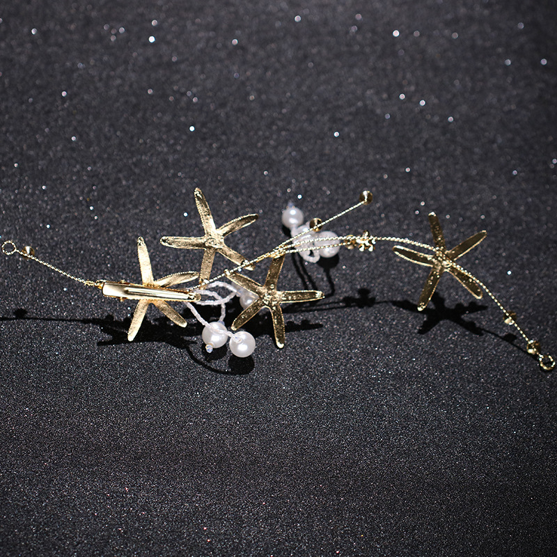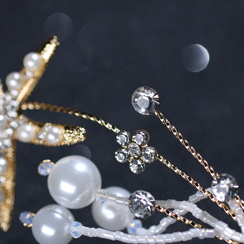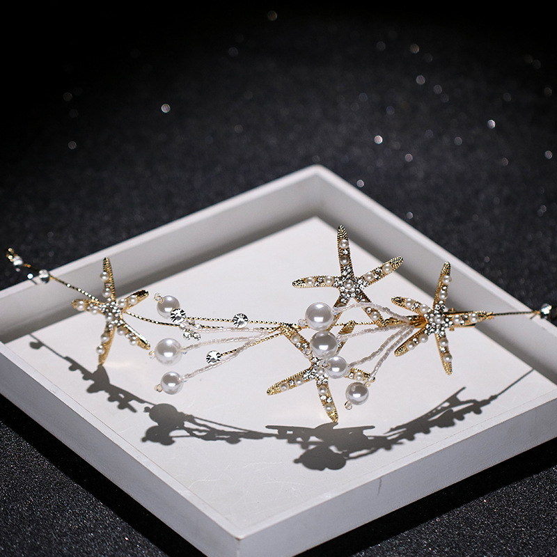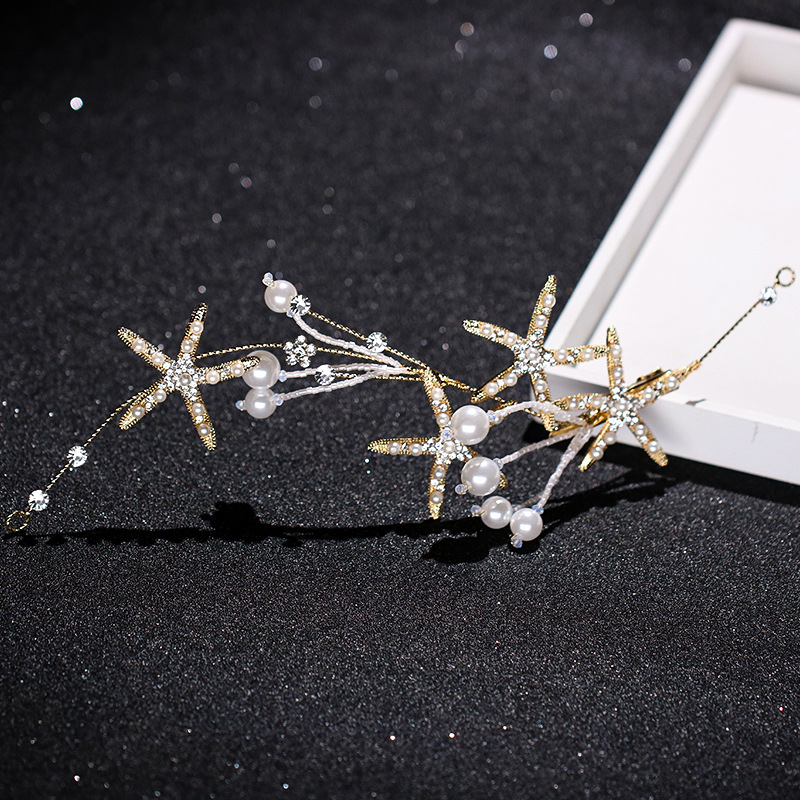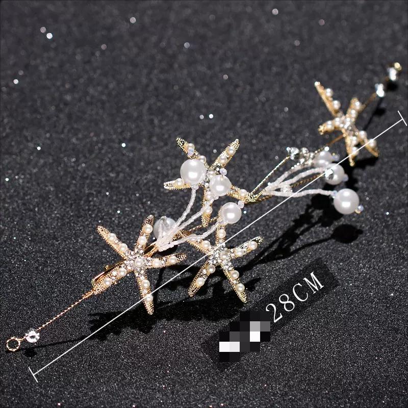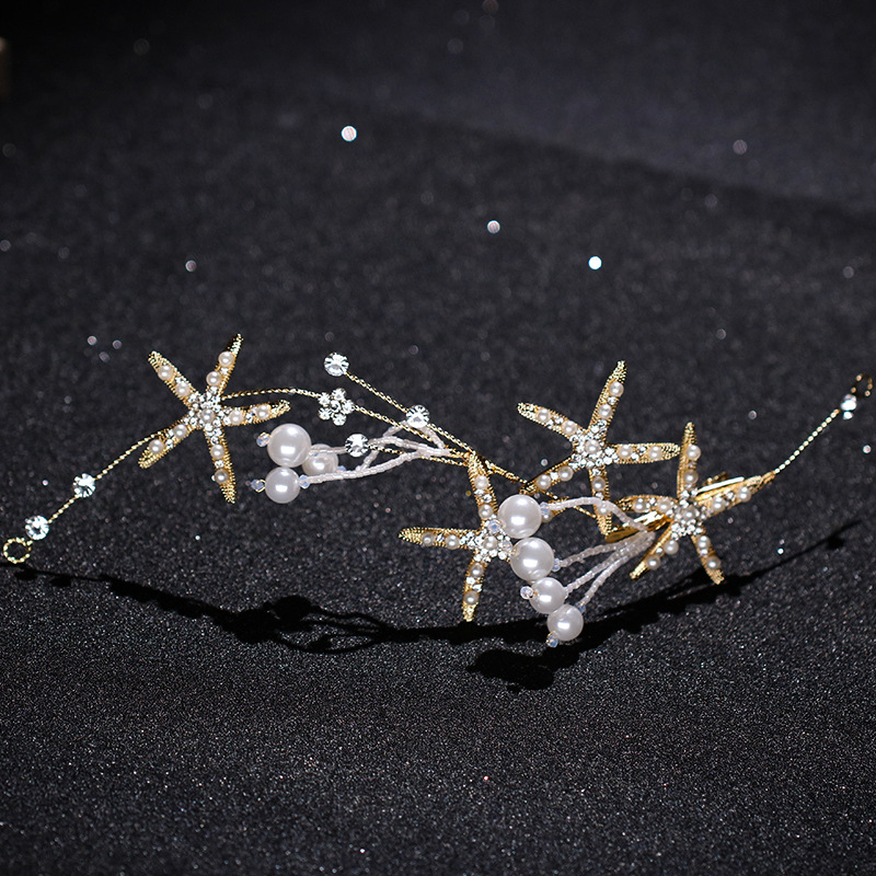 Beautiful Diamond Headband Starfish Pearl Hair Ornament Starfish Wedding Dress Jewelry