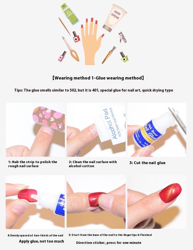 Nail sticker * 10+Jelly glue+Glue+Rubbing strip+Alcohol cotton sheet+Small wooden stick