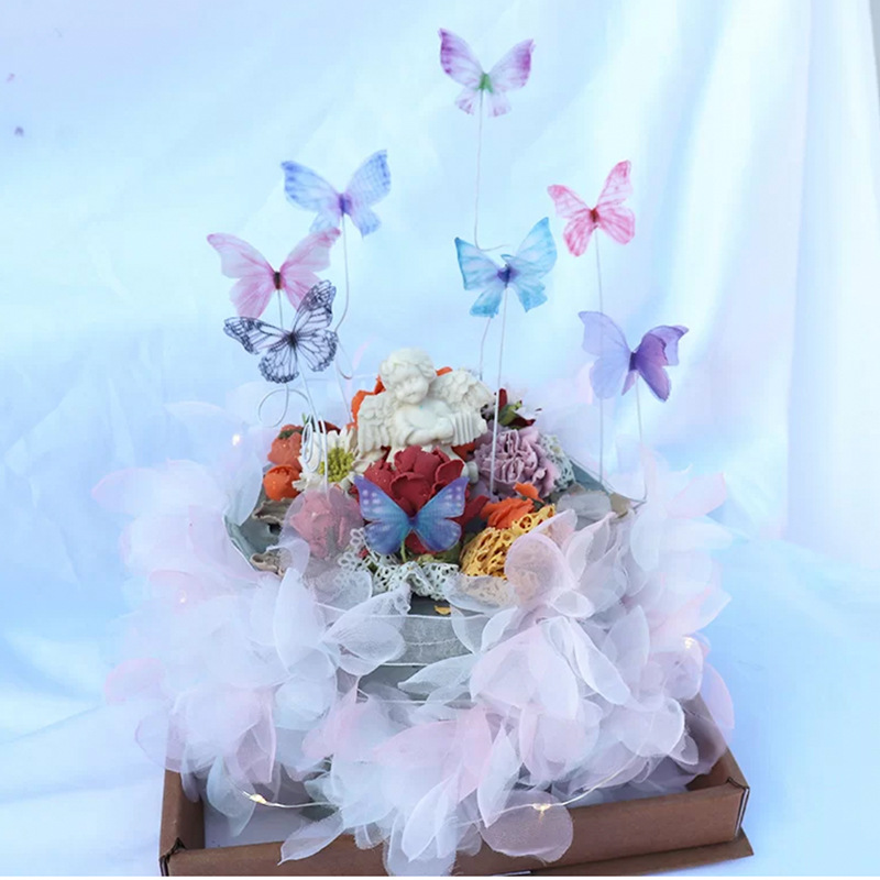 Beautiful Yarn Butterfly Ribbon Bouquet Cake Surrounding Border Decoration