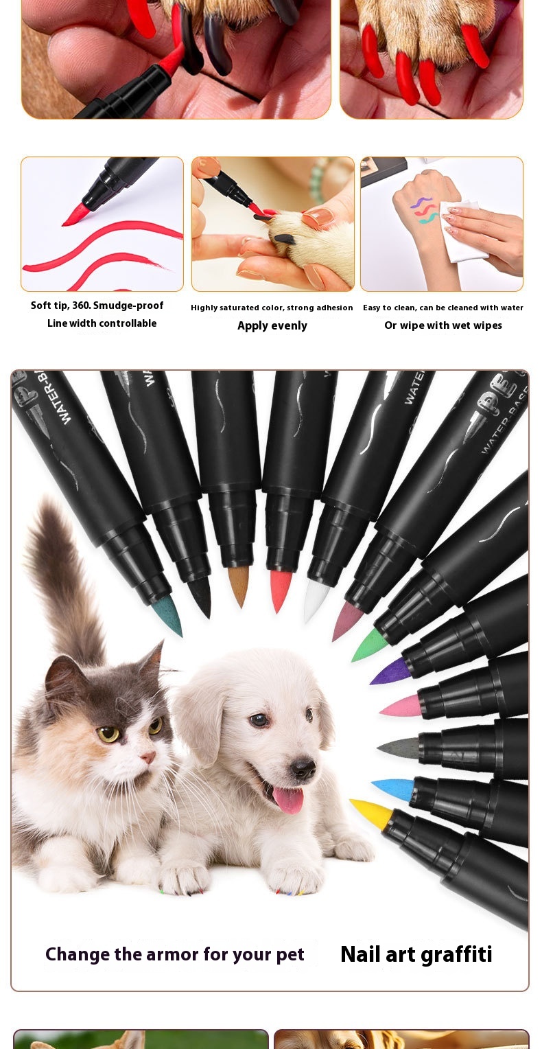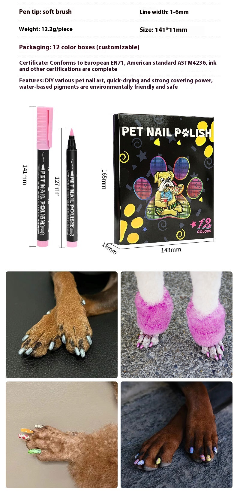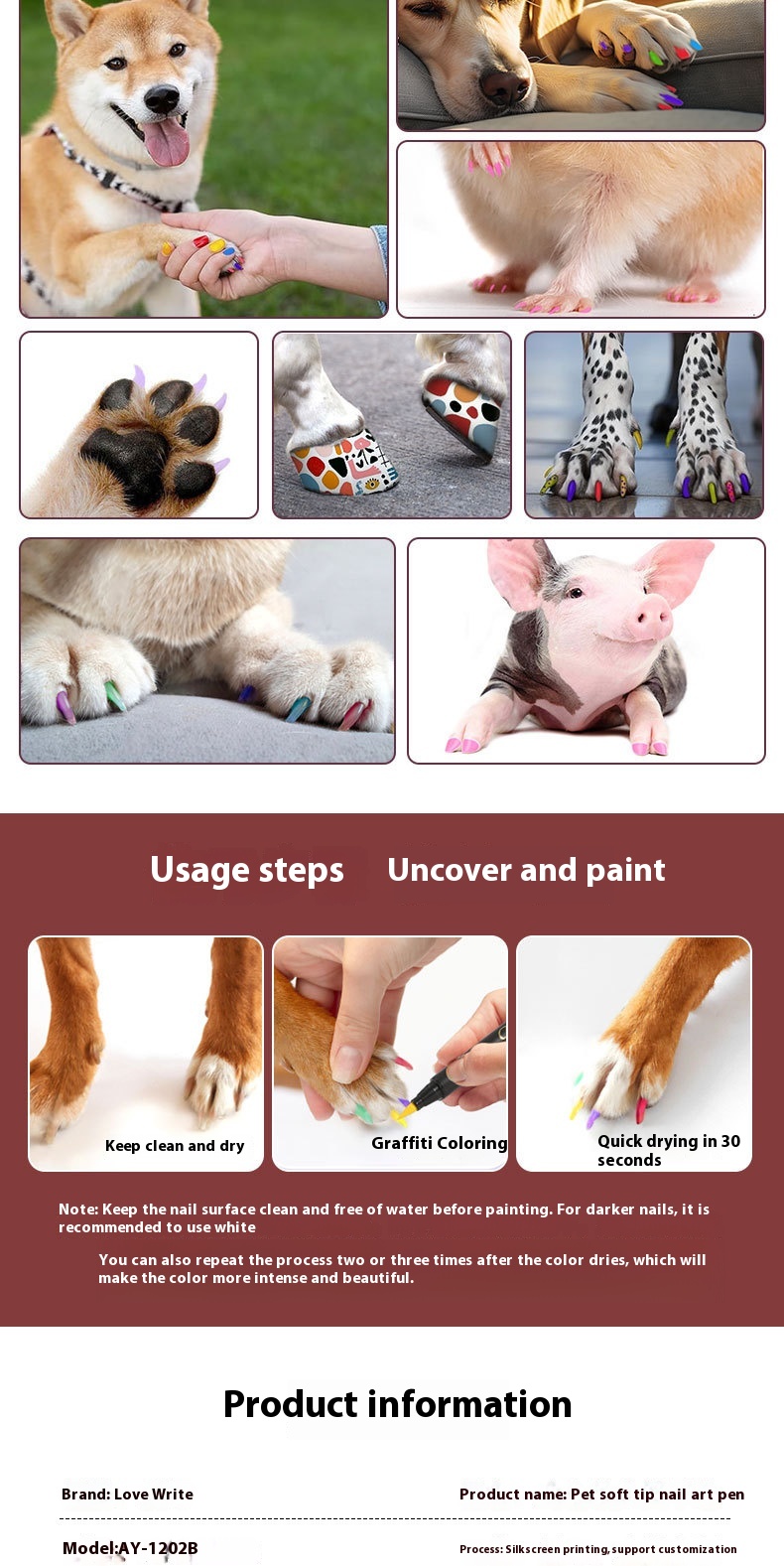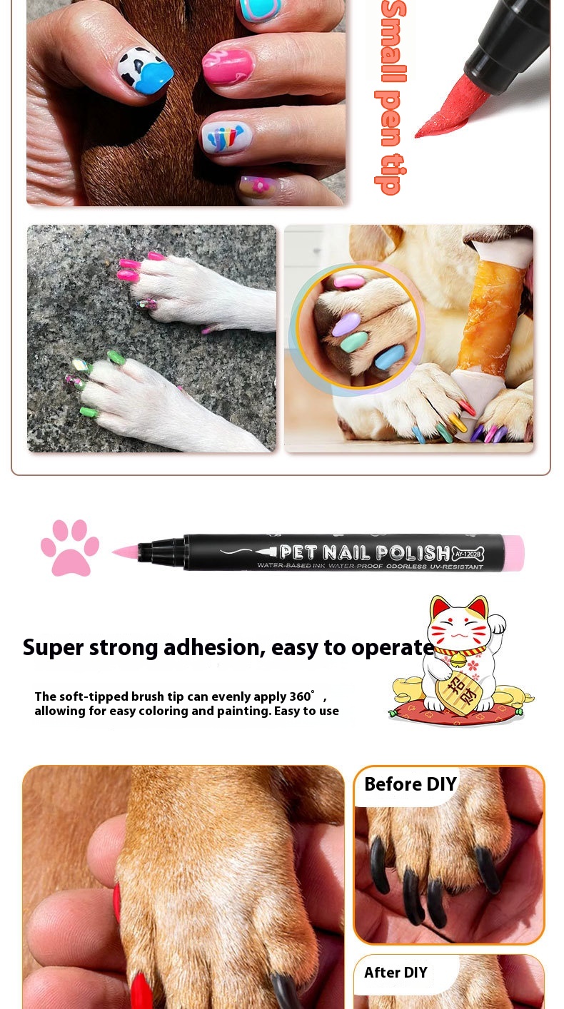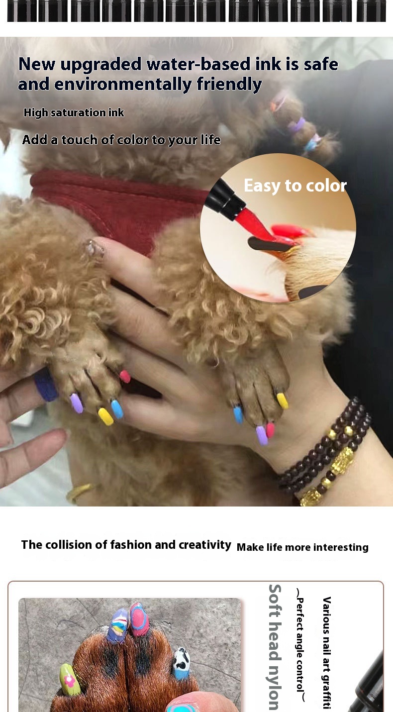 Features: DIY all kinds of pet nail art, quick-drying and strong coverage, water-based paint environmental protection and safety