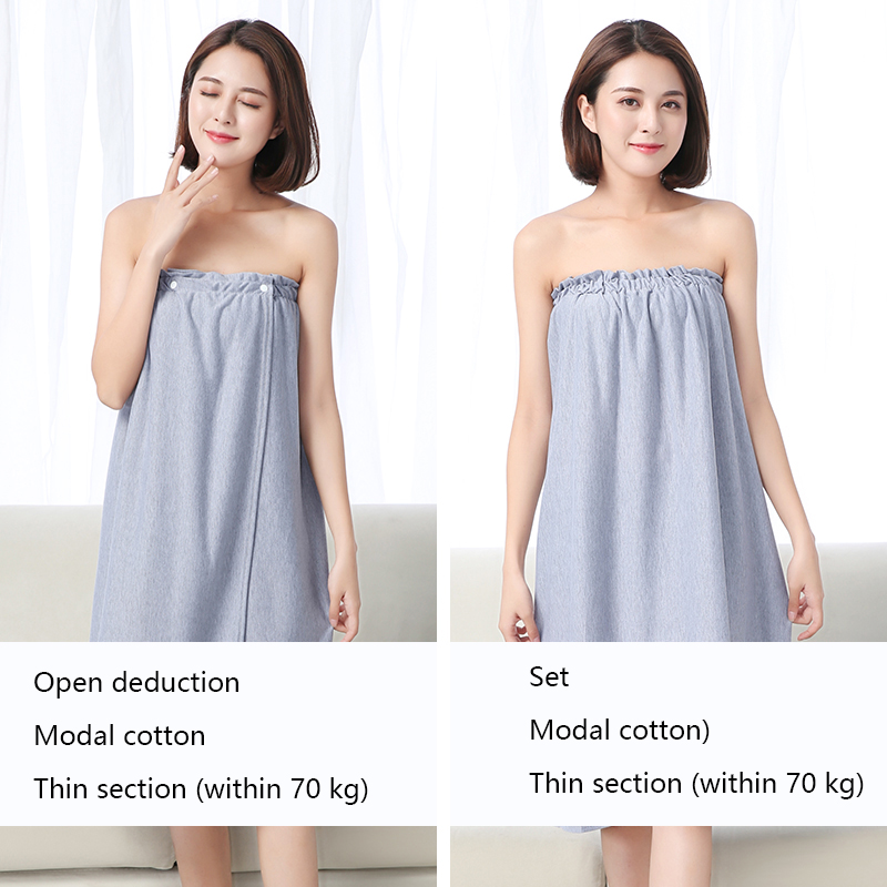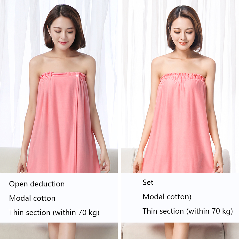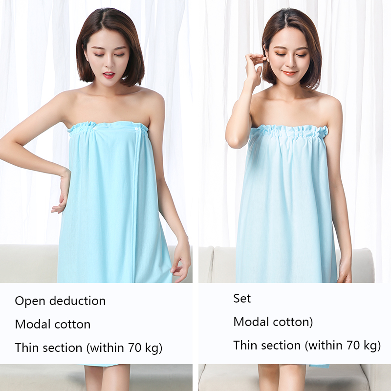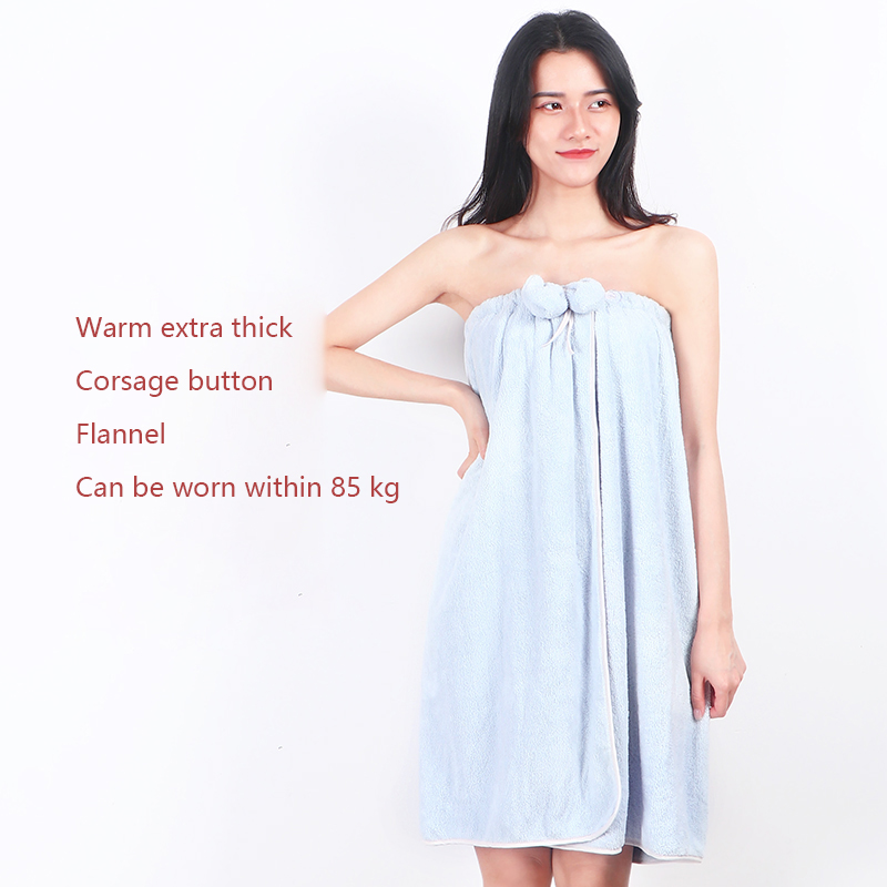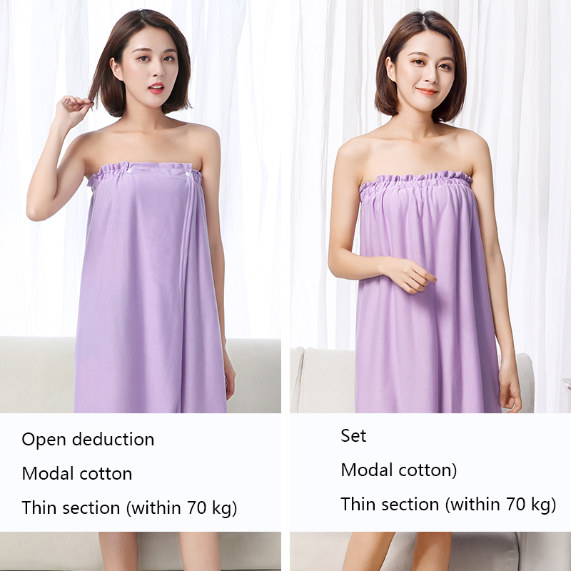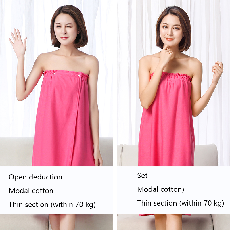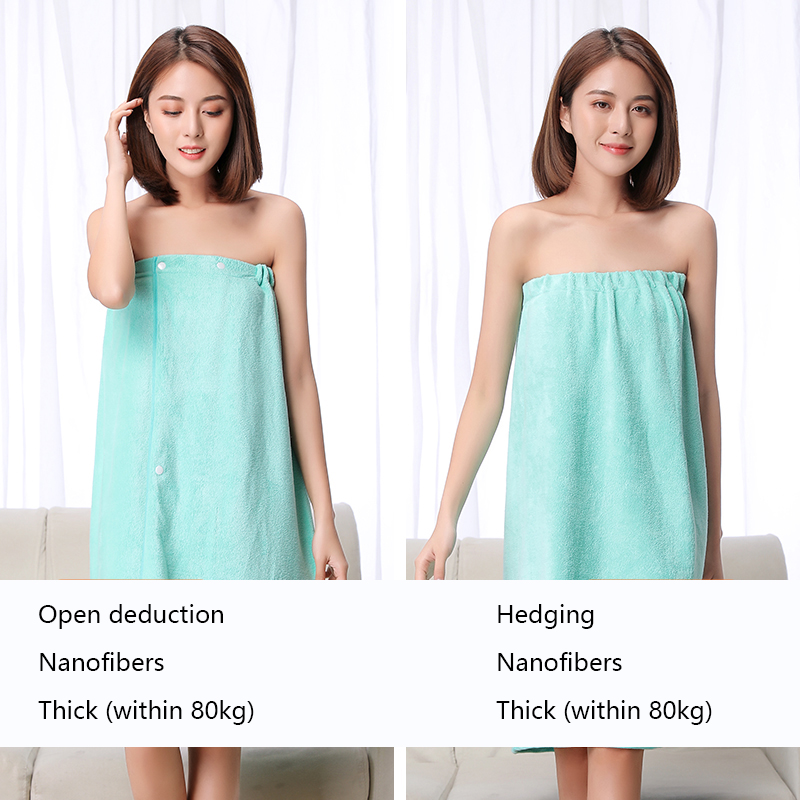 The bath skirt is divided into hedging and buckle styles, which are divided into thick styles and thin styles. The thin style is suitable for spring, summer and autumn, and the thick style is suitable for autumn and winter. The selected material is superfine fiber. Strong water absorption and super soft.