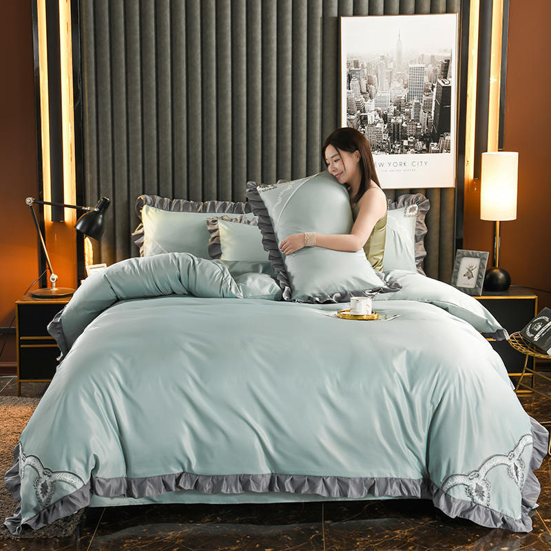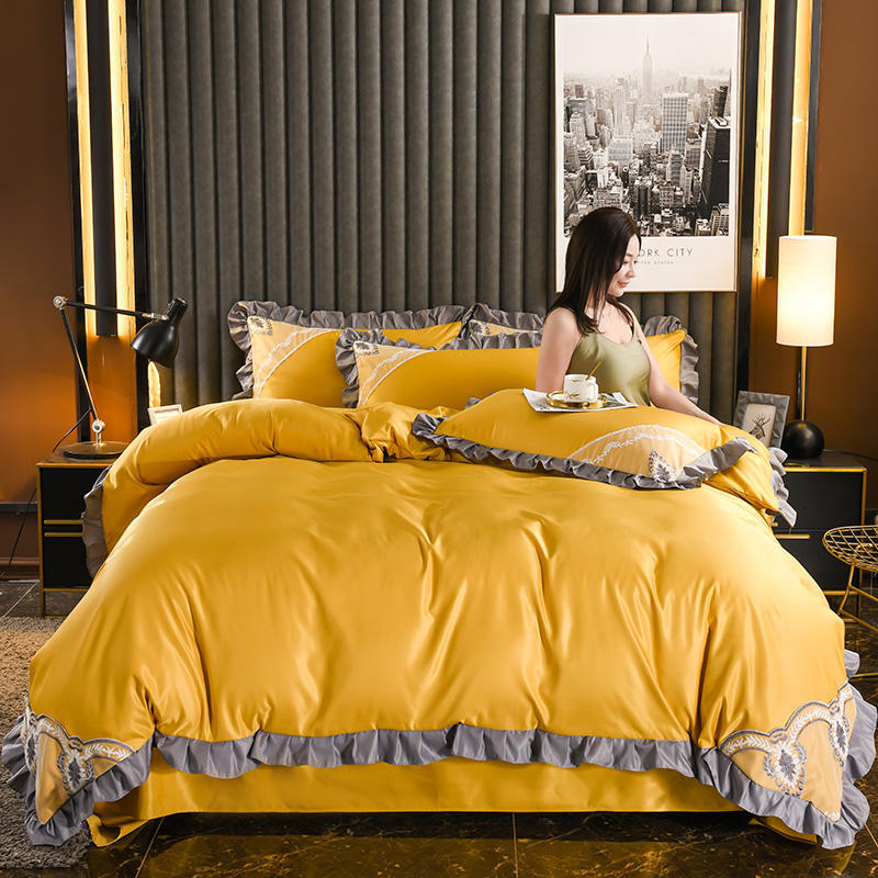Bed Four-piece Set Lace European-style Double-sided Silk