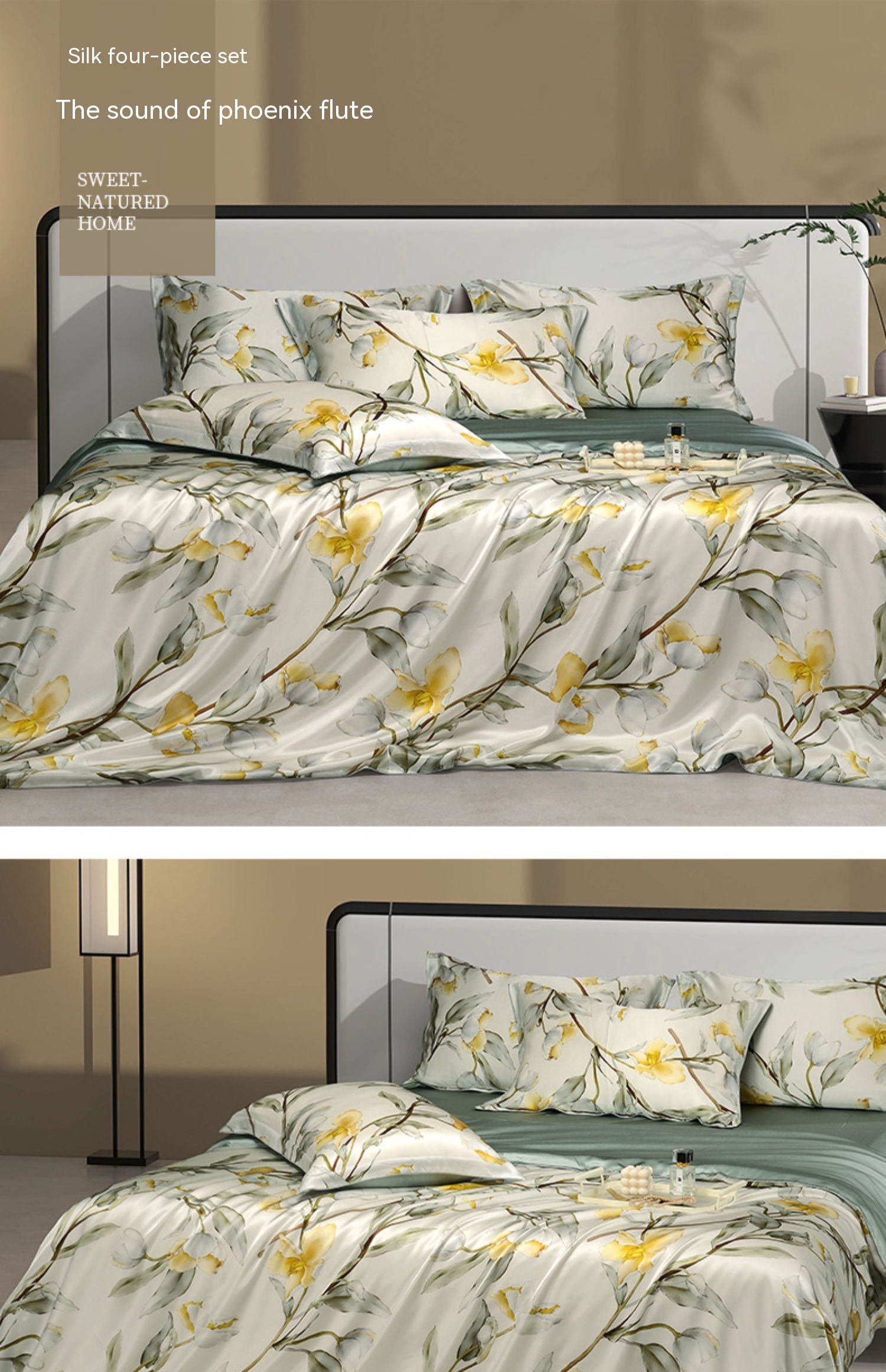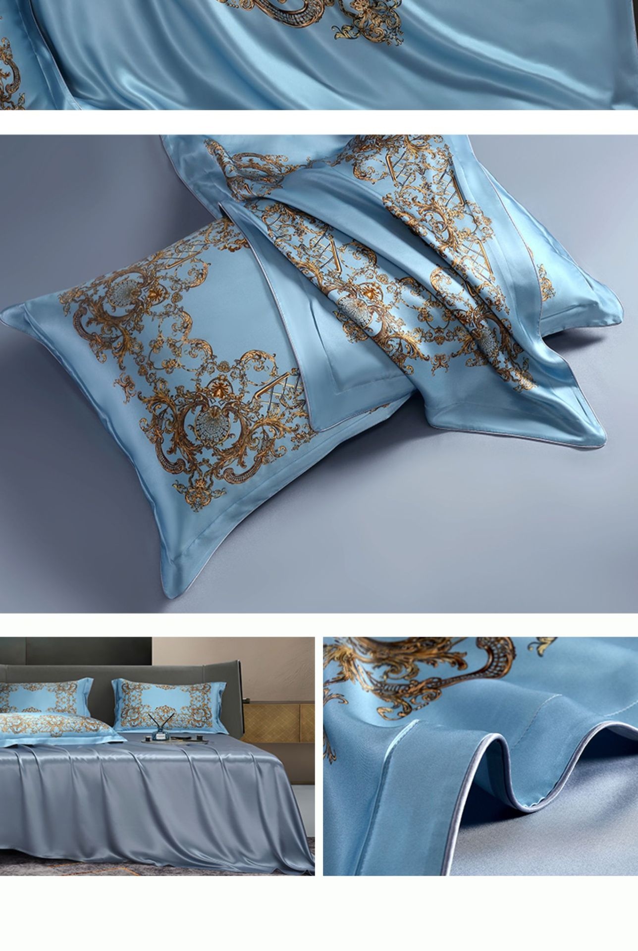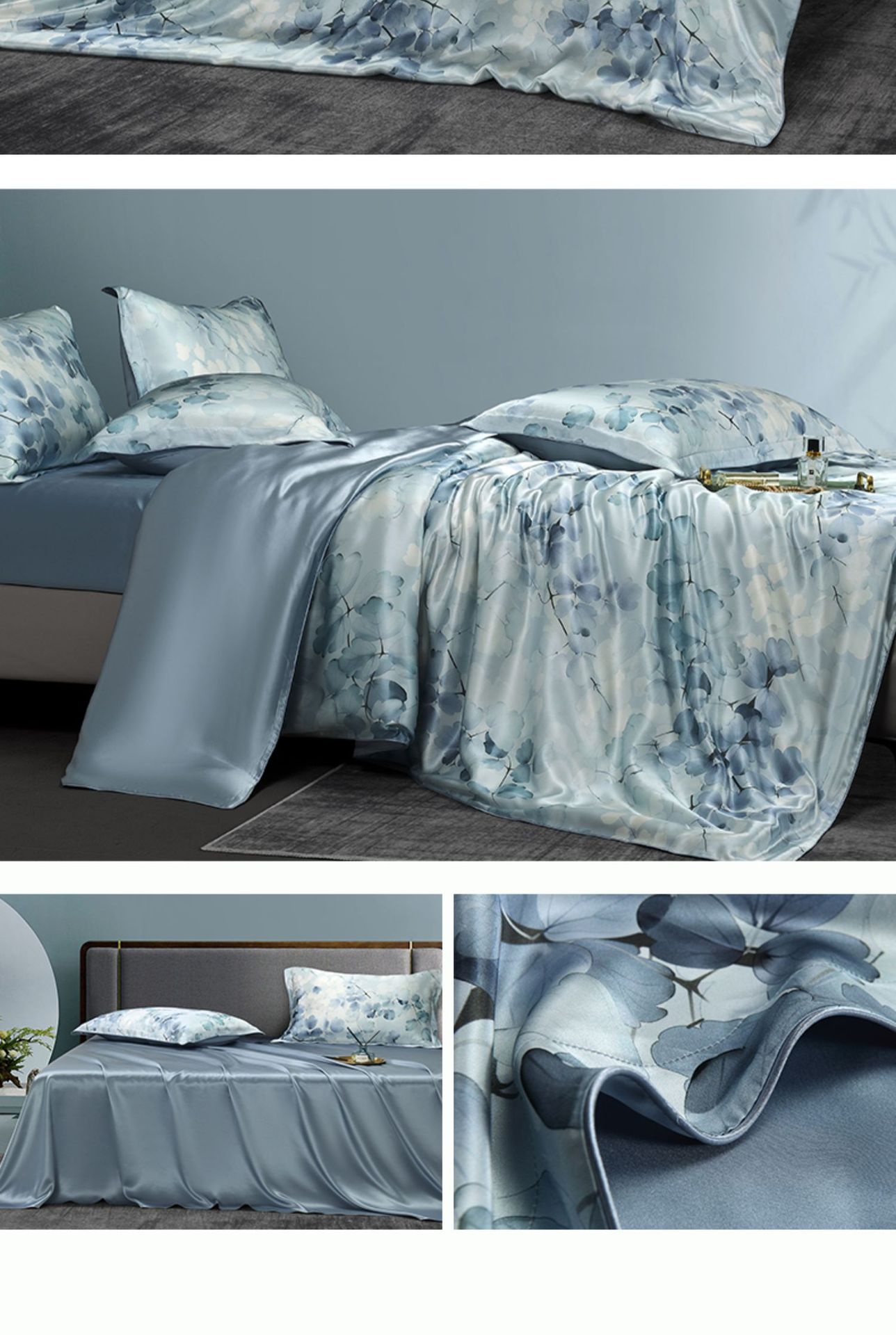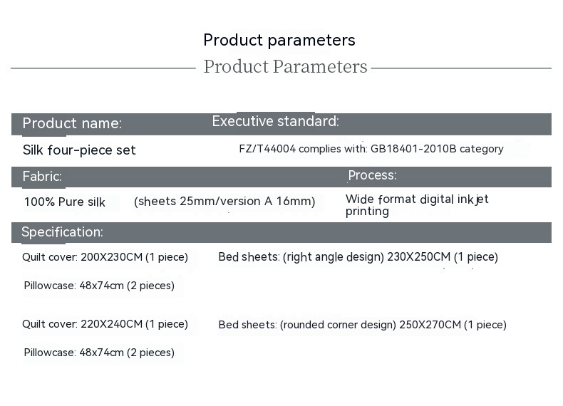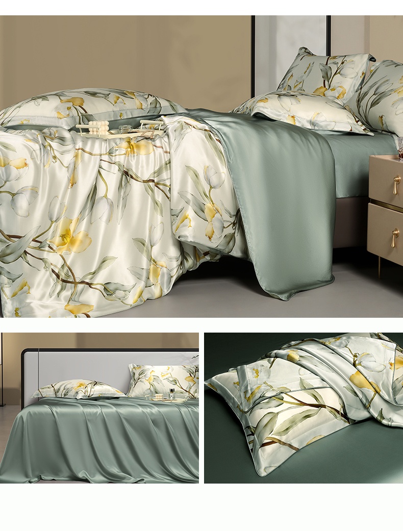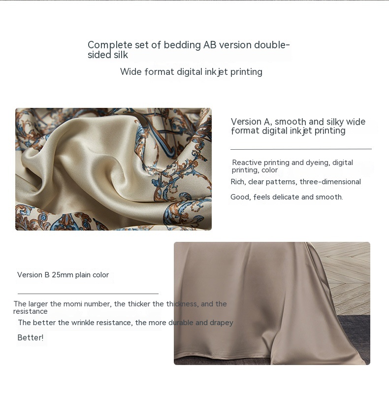 Fabric: 100% mulberry silk (bed sheet 25 M/A Version 16 m)
