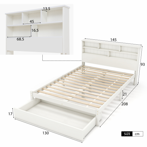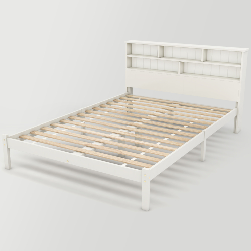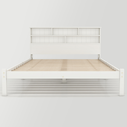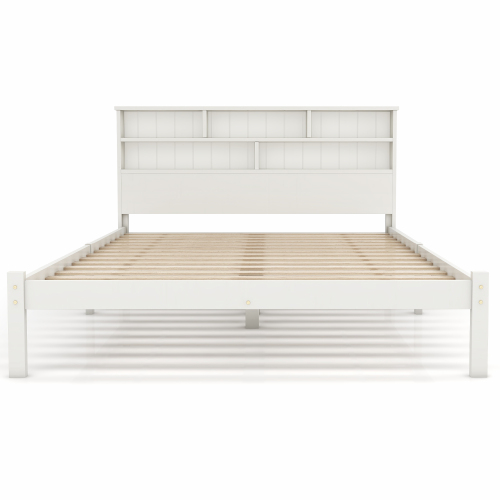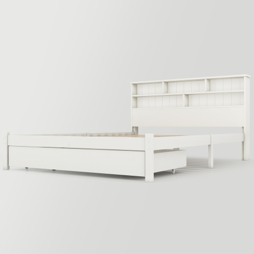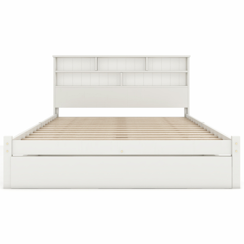 Product Name:(=TT20008990W) Bed with Shelves, White Wooden Storage Bed, Underbed Drawer - 4ft6 Double (135 x 190 cm)