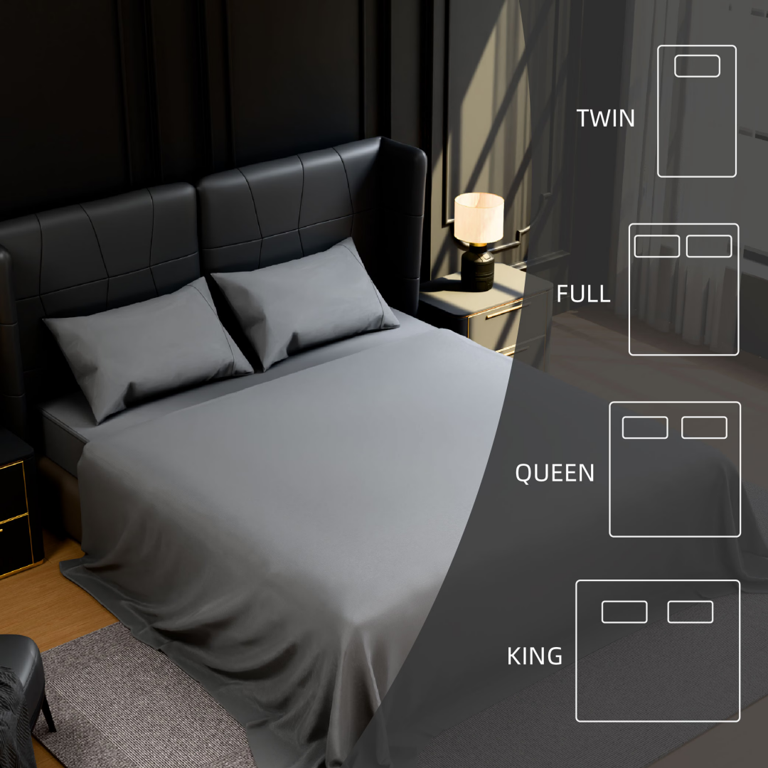 King Size 4-Piece Set: Includes 1 flat sheet (105" x 102"), 1 fitted sheet (78" x 80" + 14"), and 2 pillowcases (20" x 40"). Perfect fit for standard king beds, ideal for master bedrooms or upscale guest rooms.