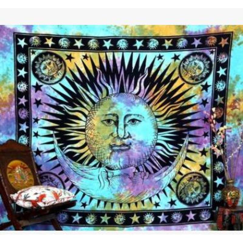 Bedding Outlet Colorful Tapestry Psychedelic Celestial Indian Sun Tapestry Hanging Throw Bohemian Door Curtain 150cm x 165 cm