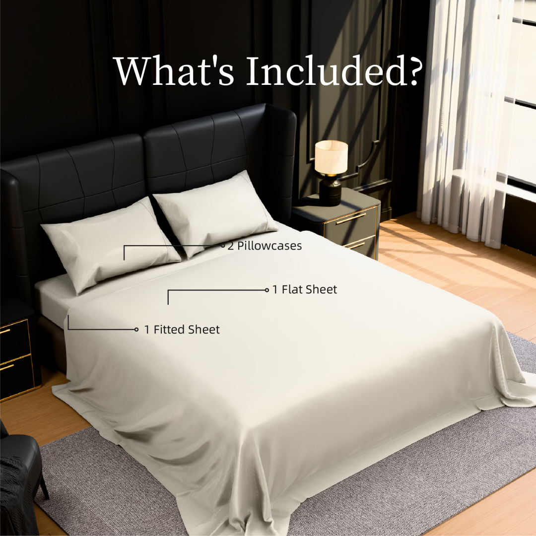 Queen Size 4-Piece Set: Includes 1 flat sheet (90" x 102"), 1 fitted sheet (60" x 80" + 14"), and 2 pillowcases (20" x 30"). Perfectly sized for standard queen beds, ideal for master bedrooms, guest rooms, or dorms.