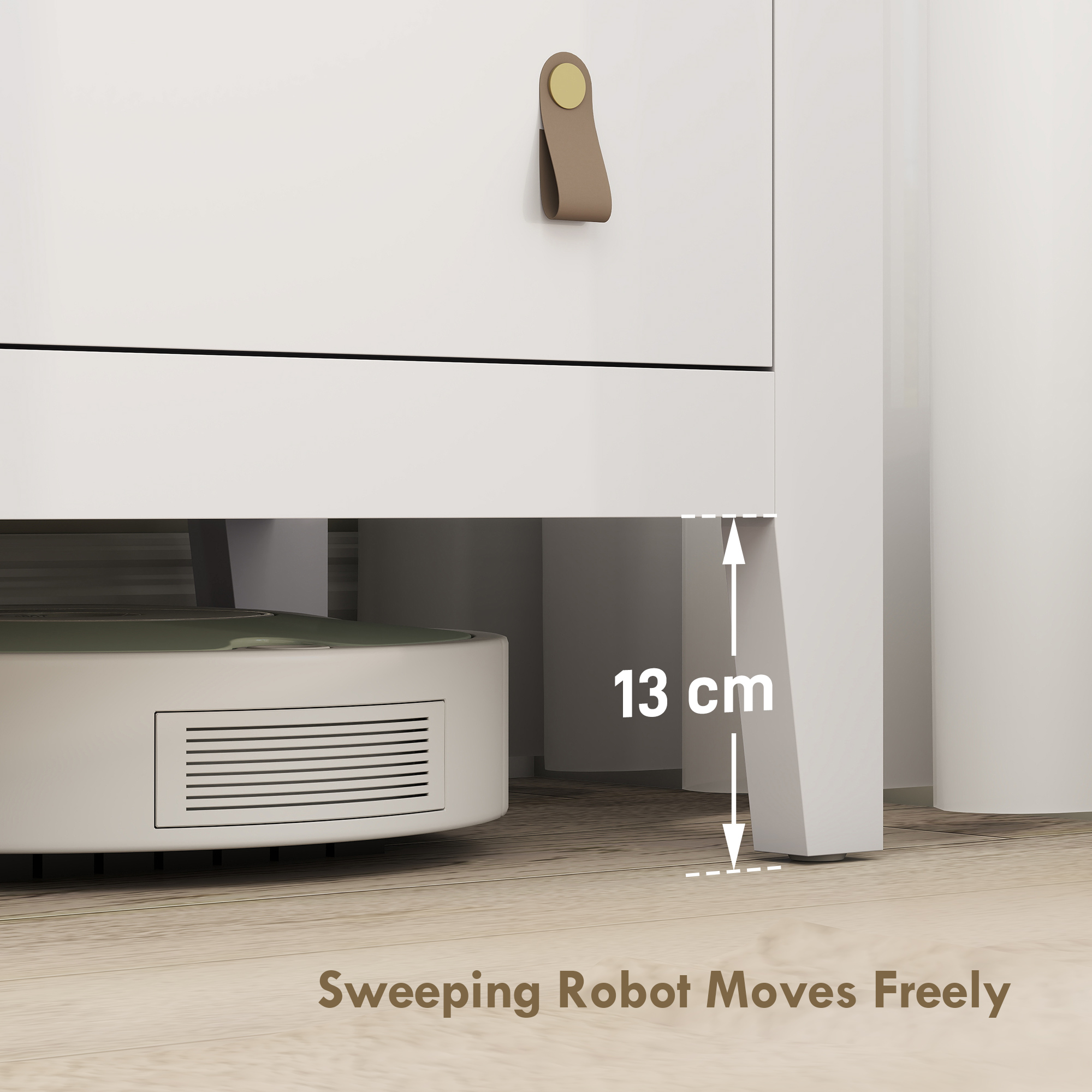 Experience the robust durability of our drawer chest, crafted from particle board meeting E1 standards for reliability and safety. Its modern style and elegant design seamlessly enhance your home decor, while offering spacious storage drawers to keep your belongings organised. Enjoy the quiet glide of the drawers, ensuring a smooth and comfortable user experience, making it a great addition to any bedroom.
