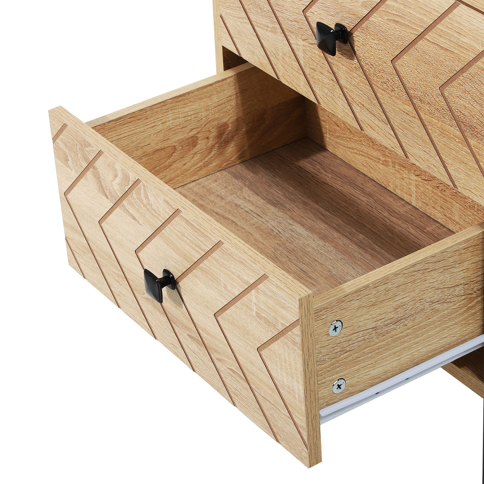 Bring character into your bedroom with this two-draw bedside table from . Built from a blend of MDF and particleboard for long term use, it is covered in a zig-zag design, making it a quirky and unique addition to your furniture you’ll love for years to come. A metal frame sits on the bottom, keeping the unit stable and helping to prevent damage, with anti-slip pads so it doesn’t move easily. It is finished with black handles on the draws, ensuring they are easy to open and close, as well as adding a sophisticated touch to the unit.