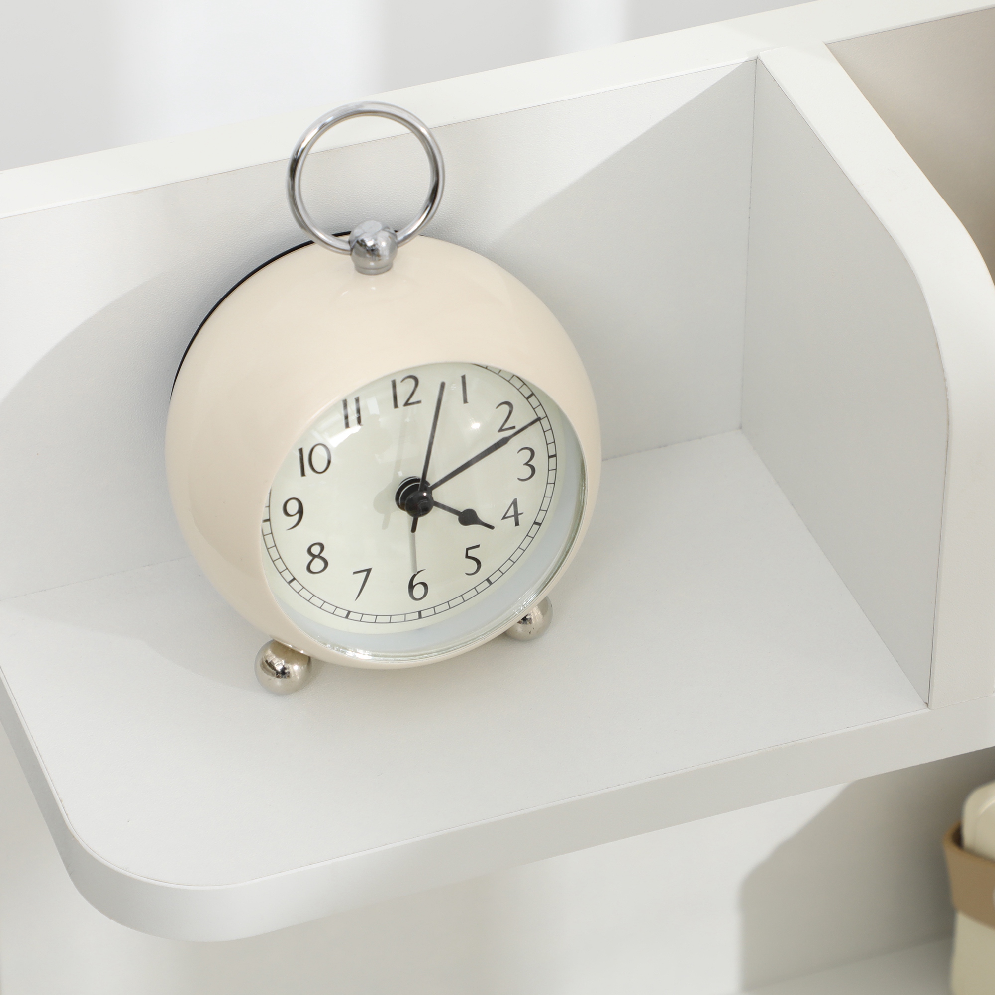 This bedside table with storage features a unique shelf-shaped design that stands out from traditional styles, blending elegance with practicality. The differently sized shelves provide lots of space for alarm clocks, books, plants, and decorative items, while two drawers keep personal belongings neatly organised—a smart storage choice for your cosy home.