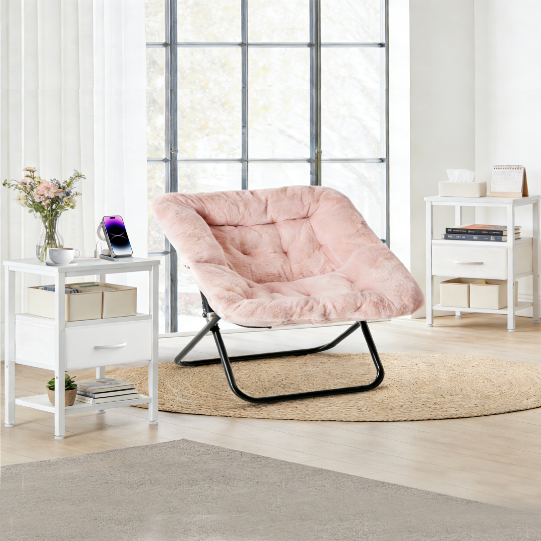 Adjustable and multi-functional storage customizes your space and drawers, which can be installed at two different heights. With three shelves and a fabric drawer added, it offers flexible storage for books, remote controls, glasses and night essentials.