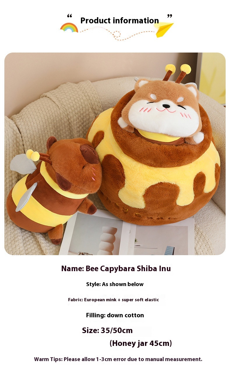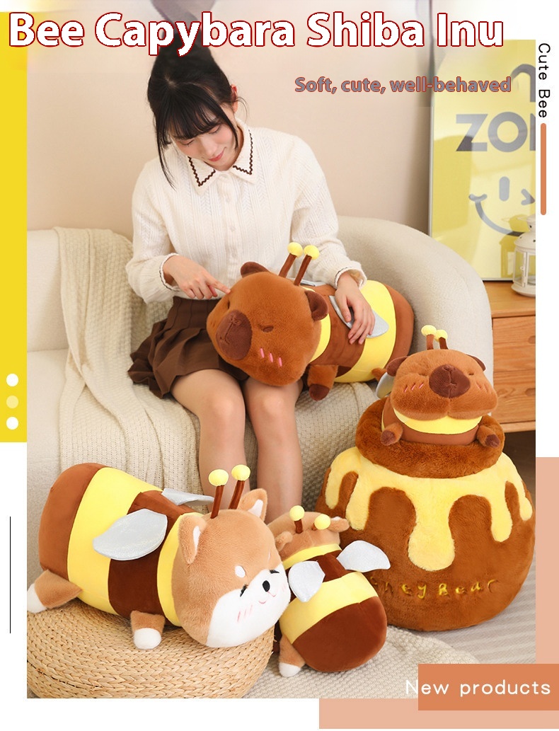 Bee Capabala Doll Plush Toys Capybara Doll Shiba Inu Cute Honey Jar Ragdoll