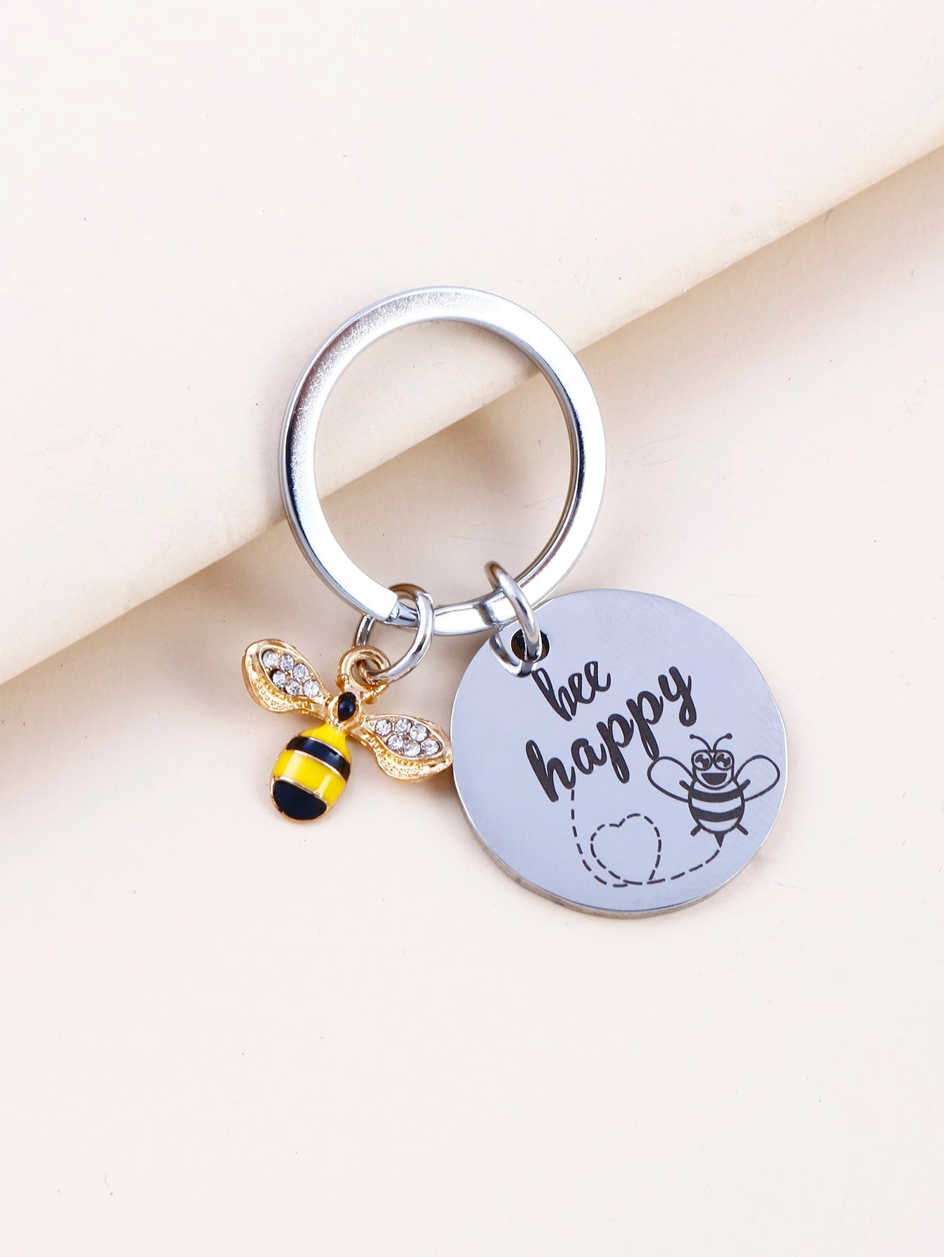 Bee Happy Send Sisters And Friends Stainless Steel Hooks Blessing Words Titanium Steel Tag Lettering