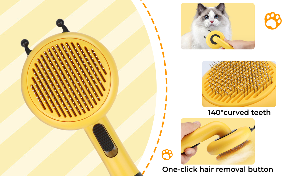 Bee-Shaped Self-Cleaning Cat Brush For Shedding One-Click Hair Removal Soft Massage Grooming Brush, Washable Deshedding Tool For Cats And Dogs, Suitable For All Coat Types
