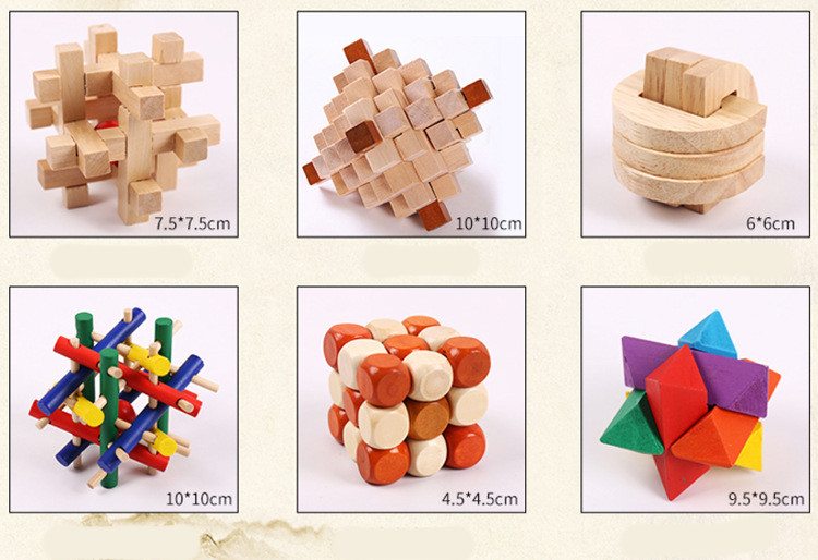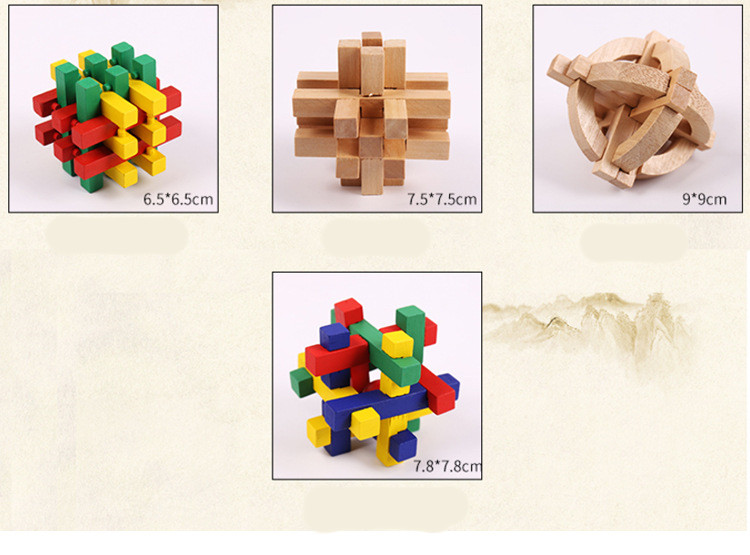 Colour: Kongming lock, Luban lock, small pineapple, 24 locks, plum locks, football locks, locks in the cage, interlocking, colored twelve sisters, dragon swinging tail, colored octagonal ball, colored eighteen columns, fourteen Pillar lock, Kongming ball, color cage lock