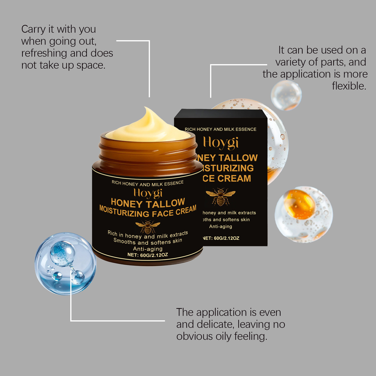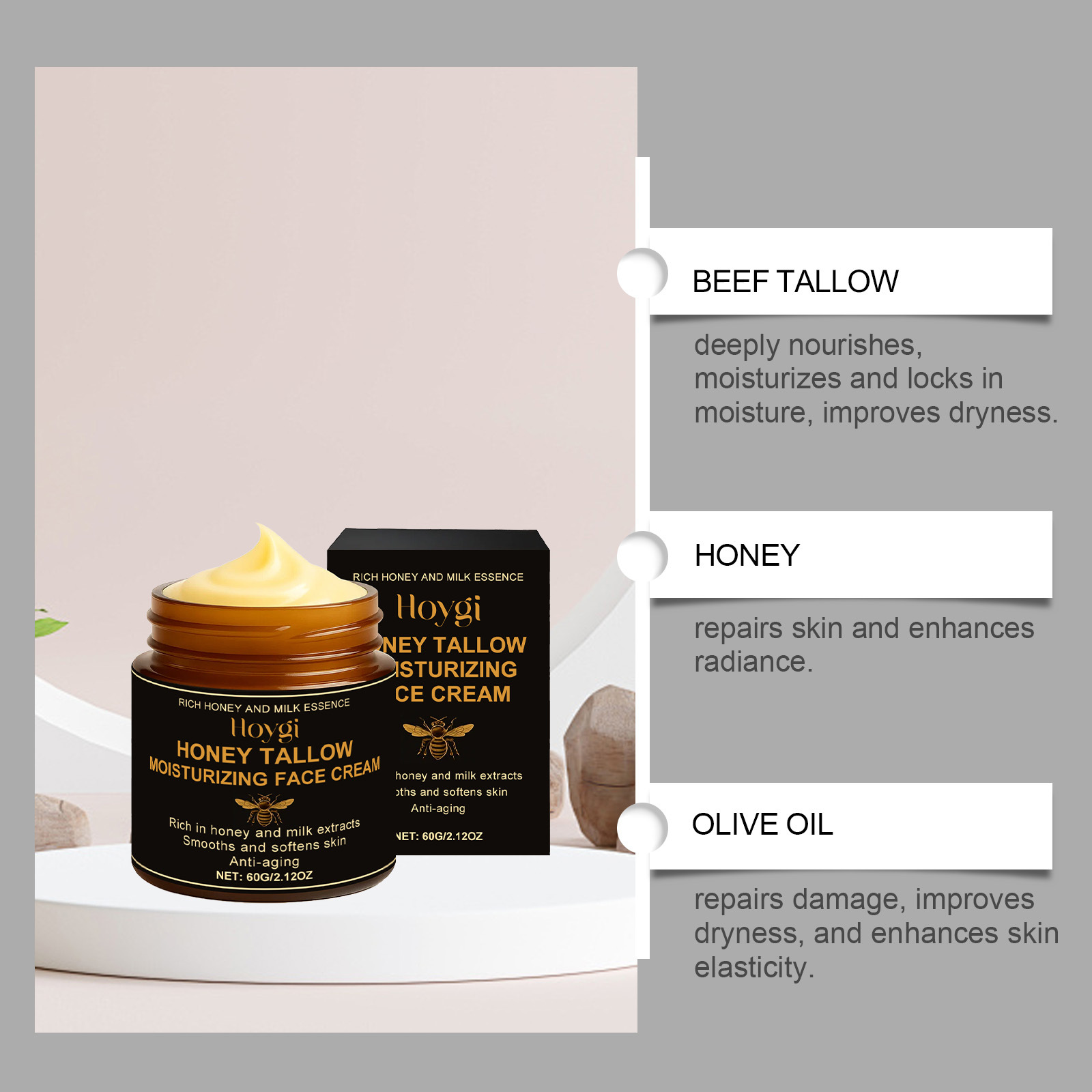 Ingredients: water, mineral oil, glycerin, glycerol stearate, 1,2- hexanediol, carbomer, arginine, honey, tallow.