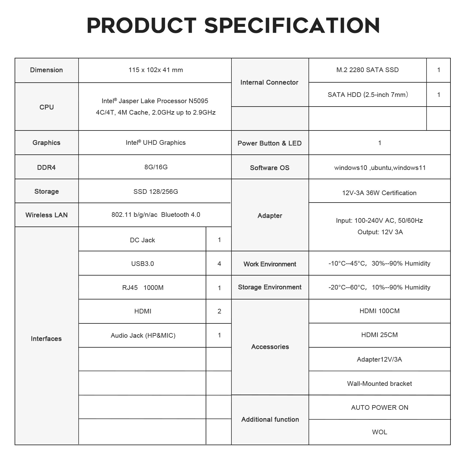 CPU type: Intel ® Jasper Lake N5095