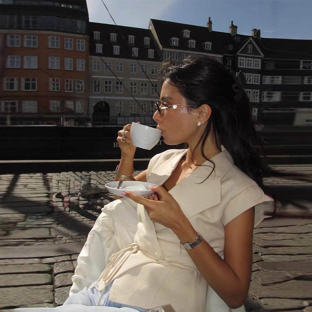 Color: Beige Sleeveless Fitted Waist Suit Set