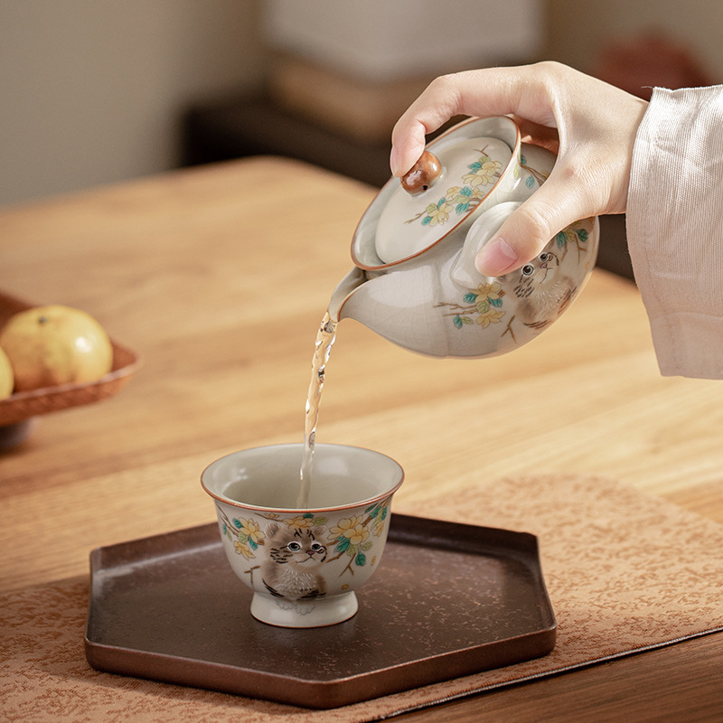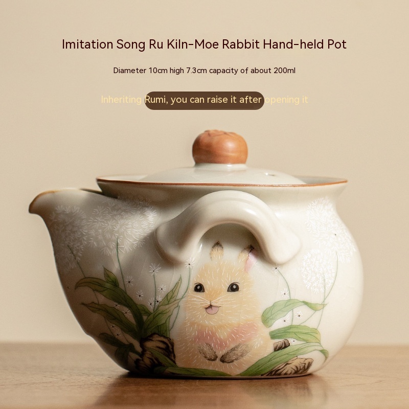 Color: Imitation Song Ru kiln · cute cat pot, Imitation Song Ru kiln · adorable rabbit pot