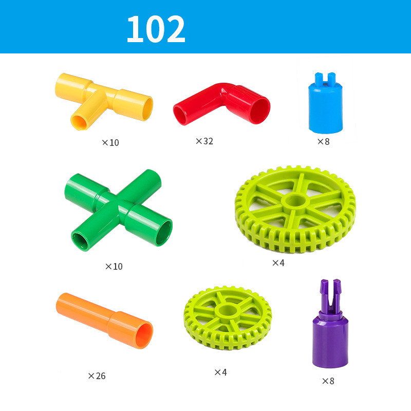 A water pipe 102 pieces in bags, B water pipe 174 pieces bags, C water pipe 242 pieces bags, D water pipe 38 pieces, E water pipe 72 pieces, F 306 bags