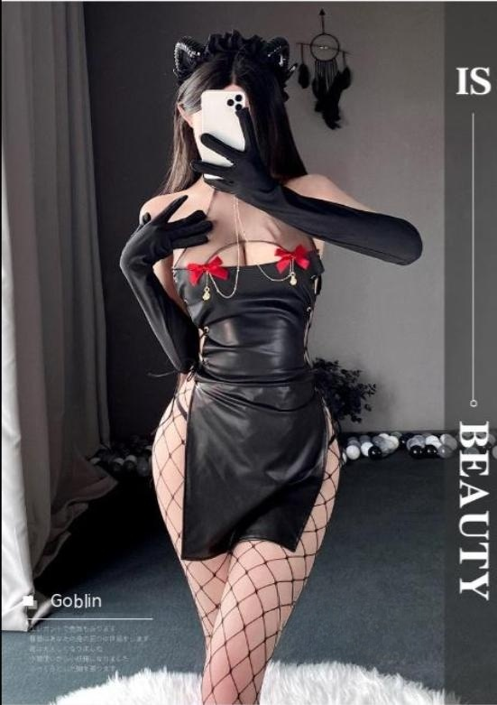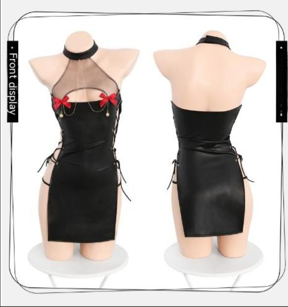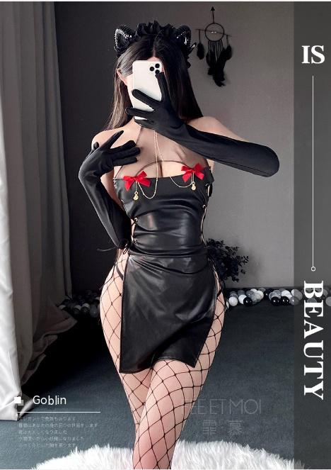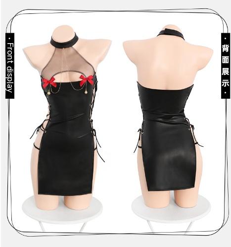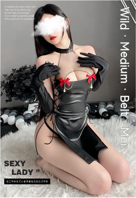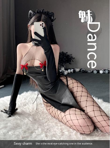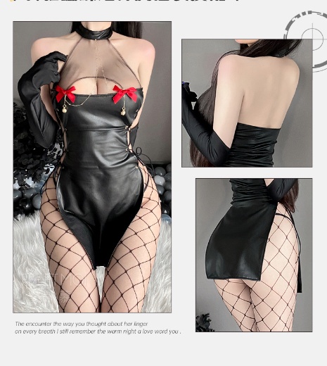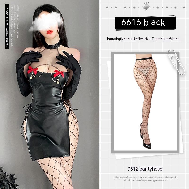 Color: Black [lace-up leather skirt T-shaped panties], Black [lace-up leather skirt T-shaped panties] black jumpsuit mesh stockings