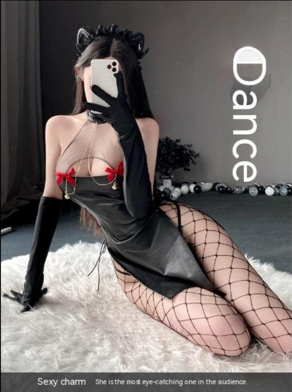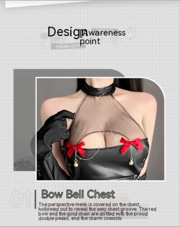 Bow Jingzhi decorated the chest, covering the transparent mesh of the chest, revealing the sexy chest groove red bow and gold necklace embellished in the two peaks of pride, coexist with the field of charm.