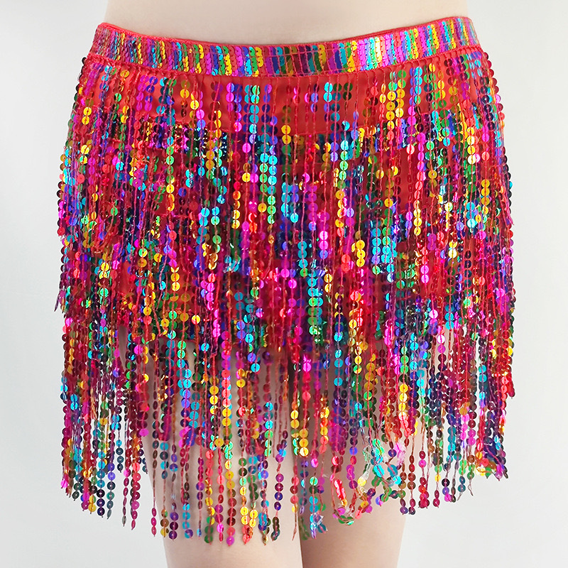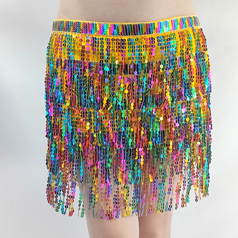Belly Dance Four Layers Tassels Waist Chain Sequin Dress Female
