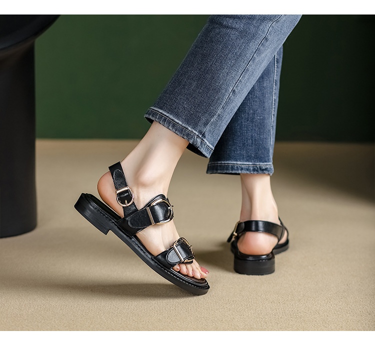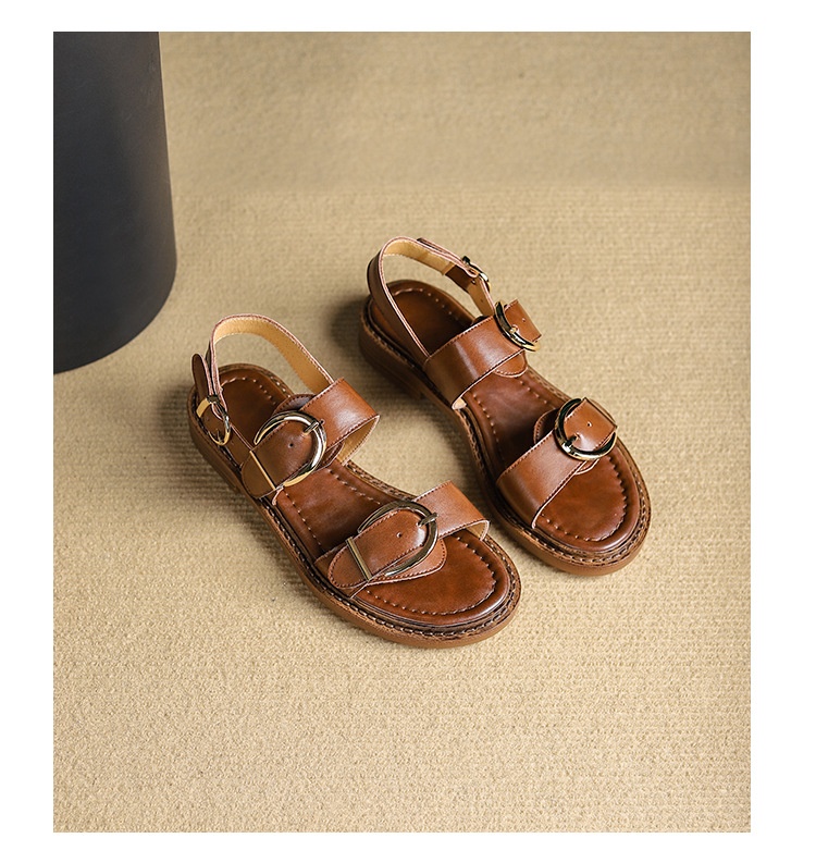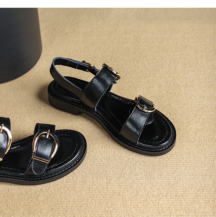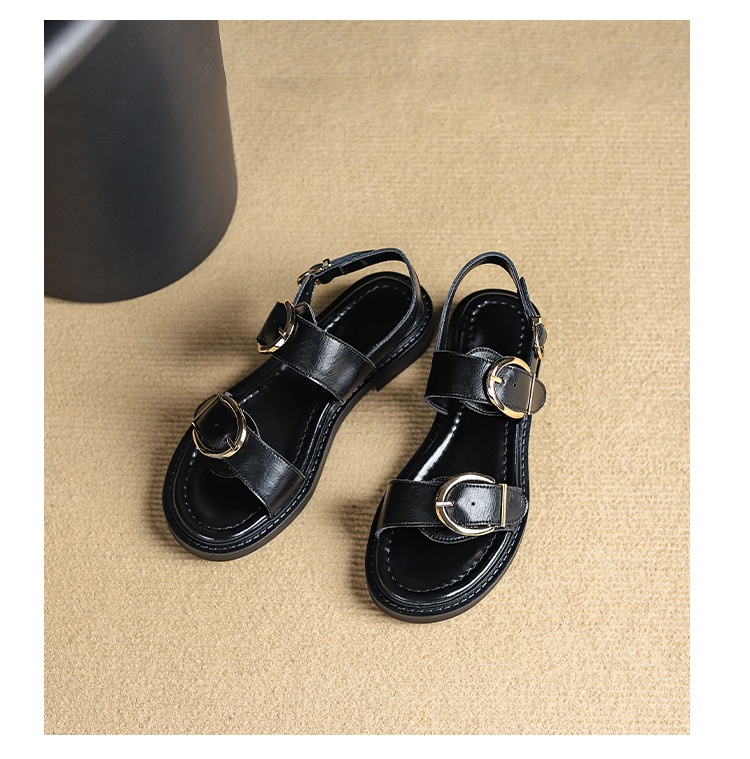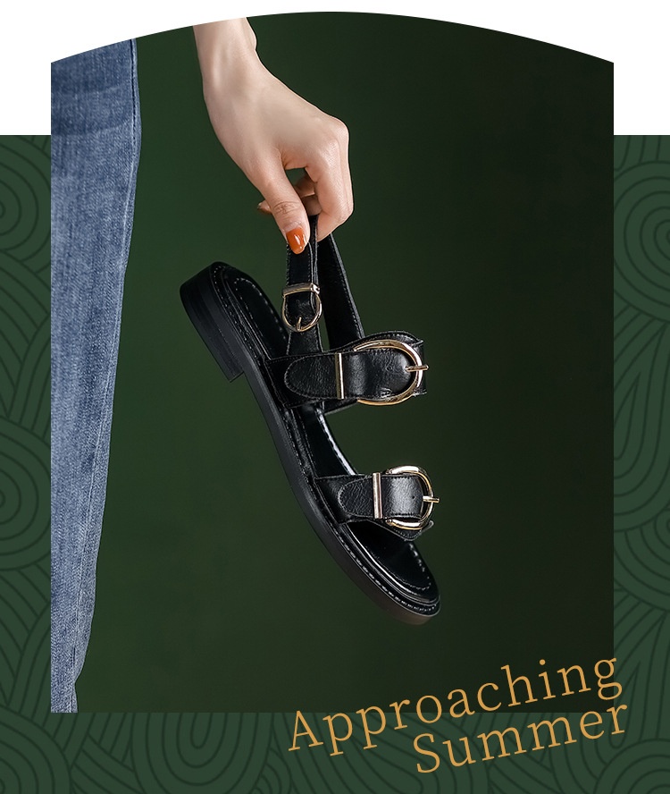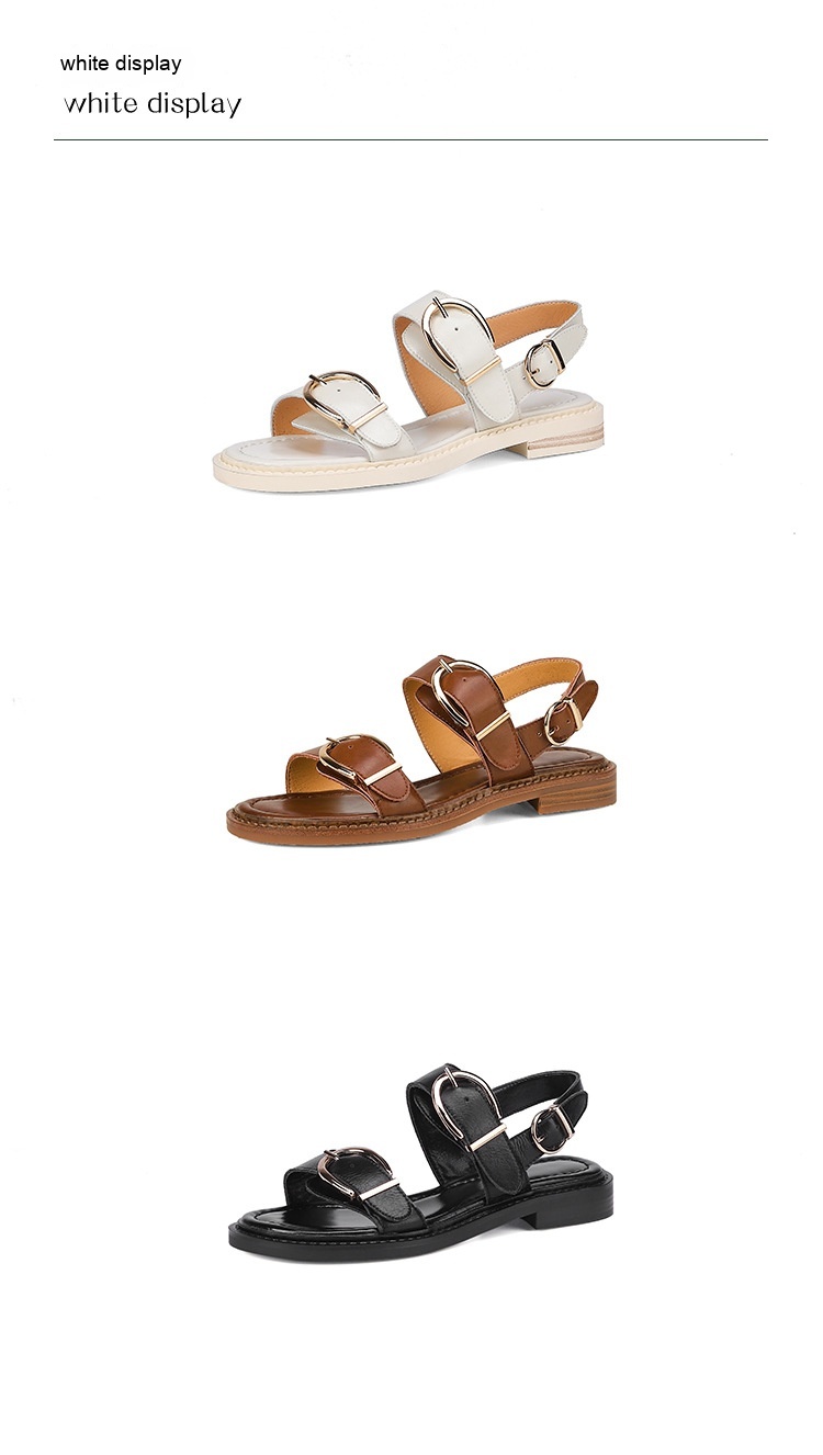 Belt Buckle Ankle-strap Sandals Back Strap Low Heel Chunky Heel Cowhide