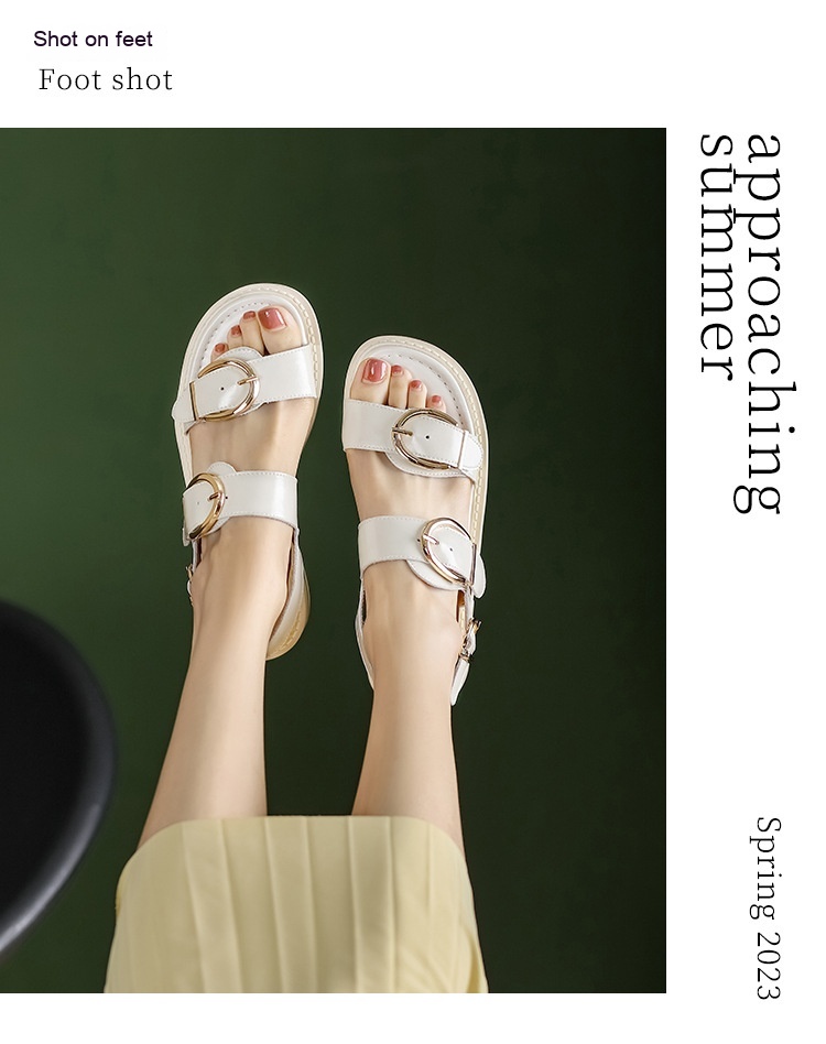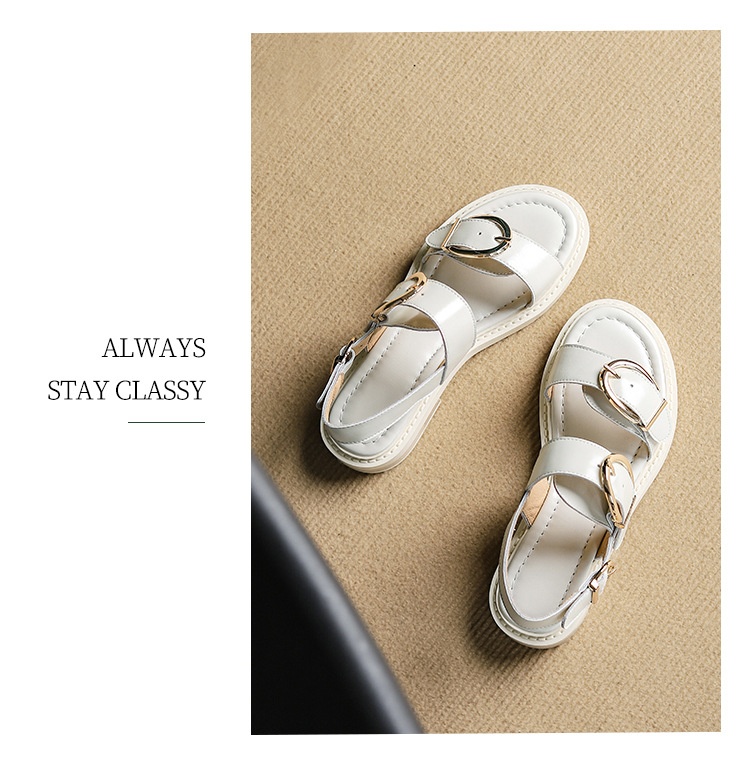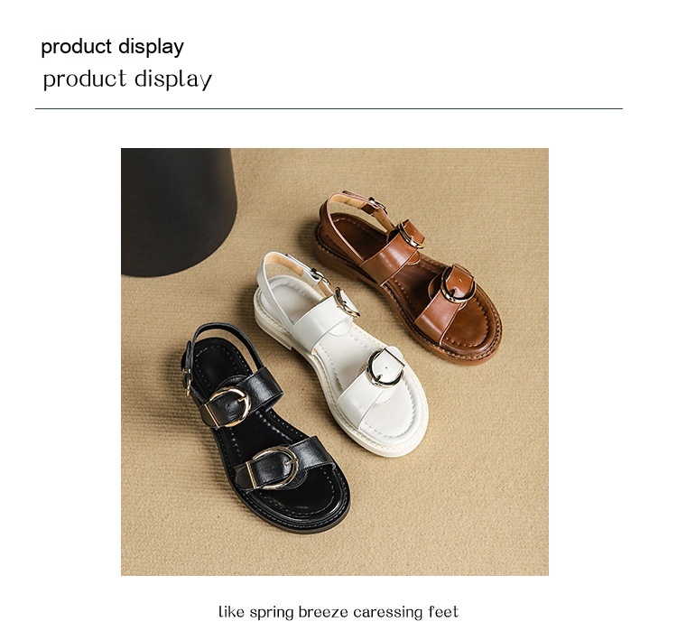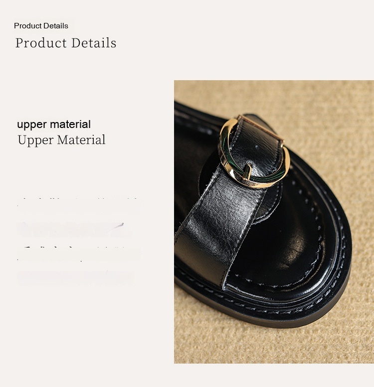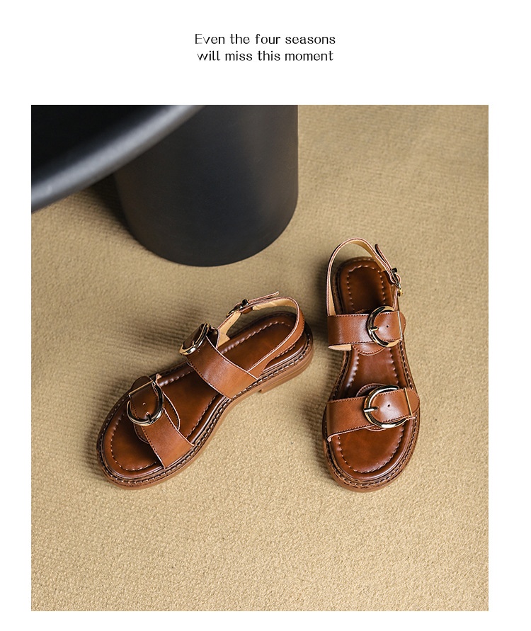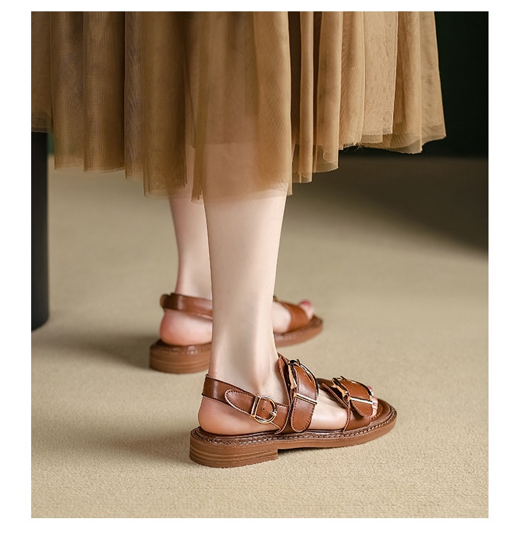 Belt Buckle Ankle-strap Sandals Back Strap Low Heel Chunky Heel Cowhide