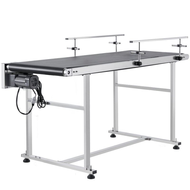 Belt Conveyor, 59 X 23.6 Inch Conveyor Table, Heavy Duty Stainless Steel Motorized Belt Conveyor For Inkjet Coding Applications Powered PVC Belt Anti-Static Adjustable Speed (Double Guardrail)