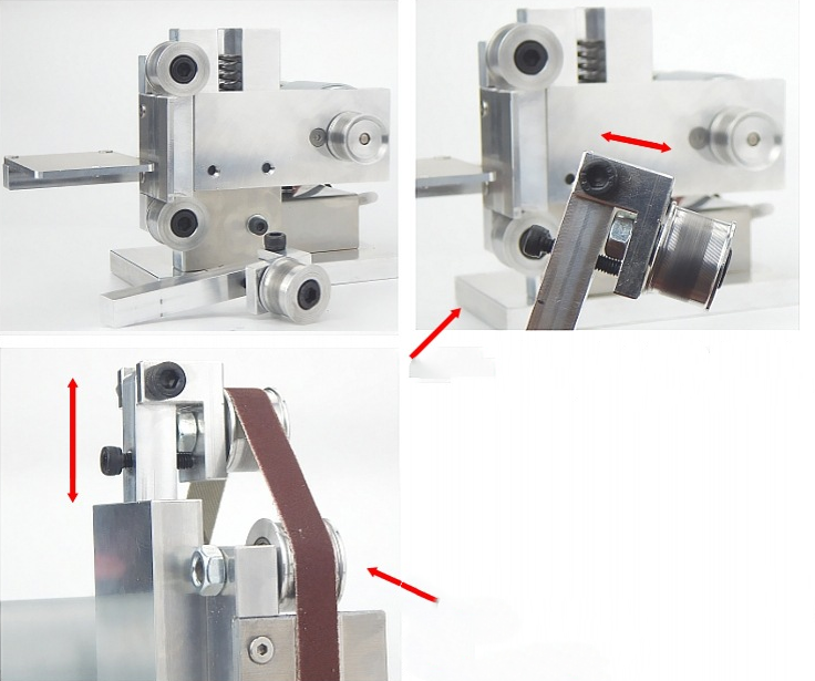 The eccentric adjustment wheel adjusts the verticality of the belt.