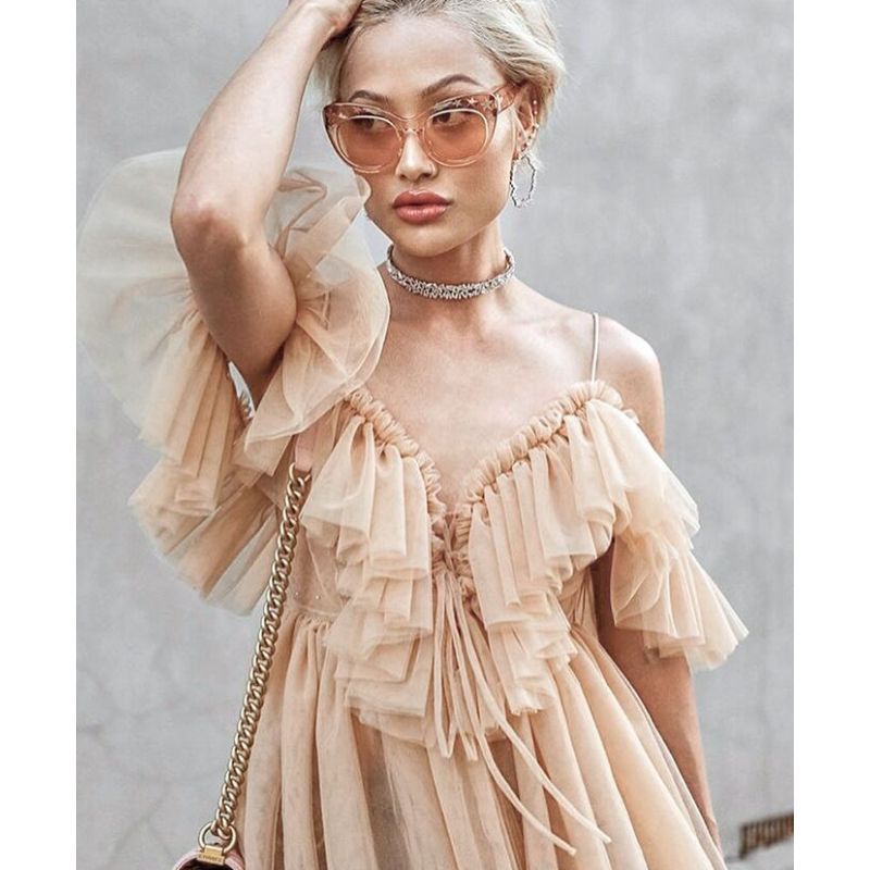 Style: Commuting Commuting: OL Style Collar: V-neck placket: Lace-up pattern: Solid color Content: 31% (inclusive) -50% (inclusive) Texture: Other applicable age: 25-29 years old Season: 2018 Summer Color Classification: Apricot Size: SML