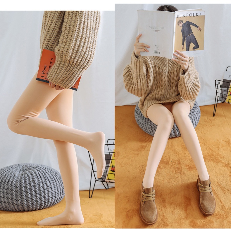 Best Flesh Color Pantyhose Women Fleece-lined Thick Leggings