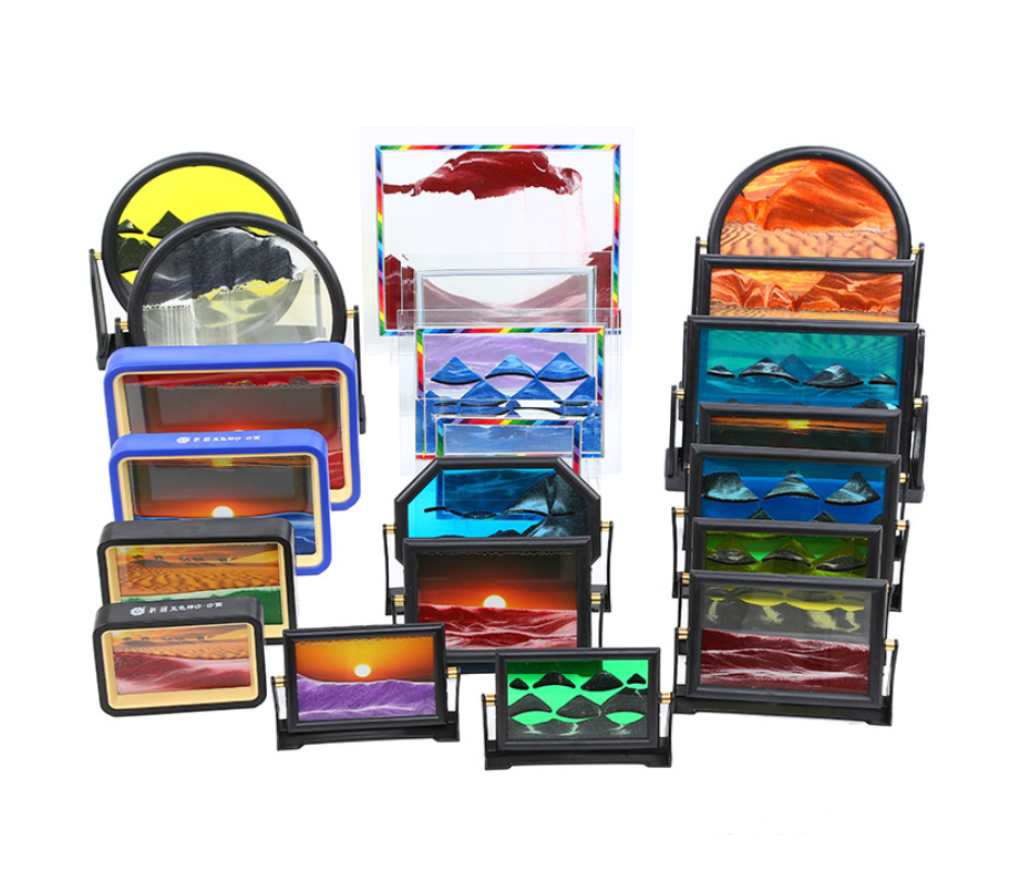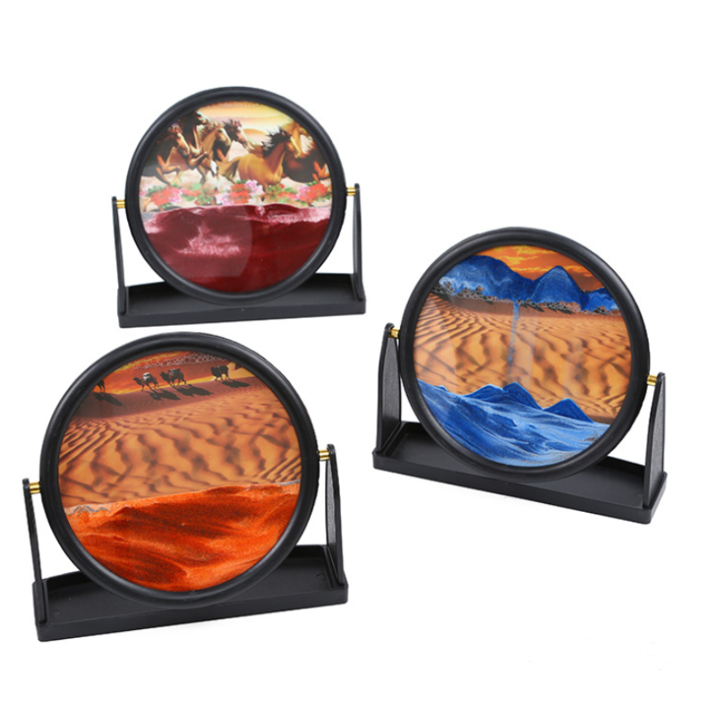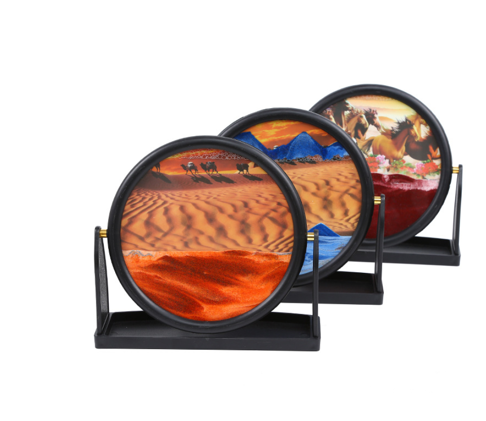 Best selling boutique round 3d desert landscape series glass sand painting home decoration crafts custom wholesale