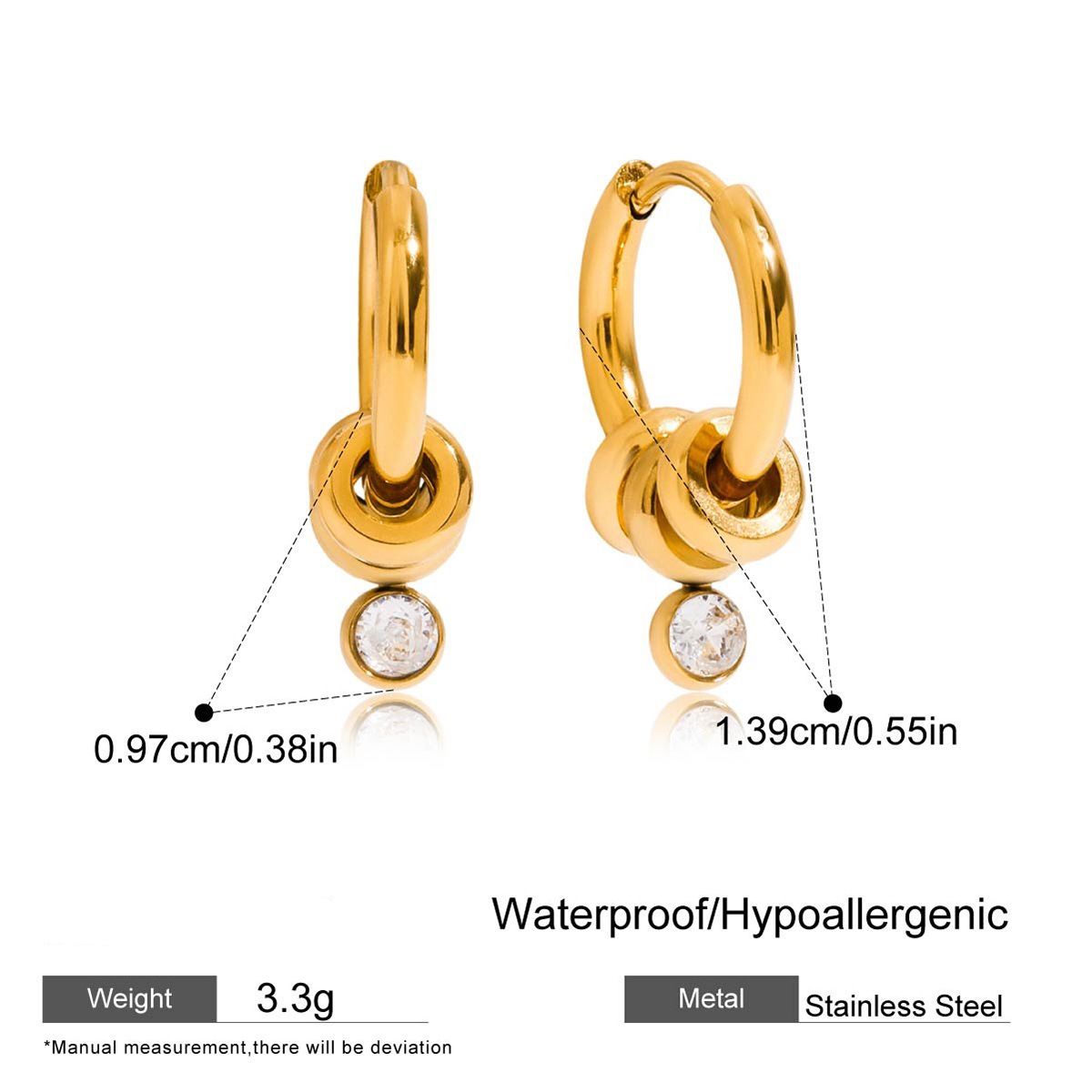 Product information:Color: White zircon earrings, 2 styles, 3 styles Material: Stainless steel Shape: Geometric Style: Light luxury