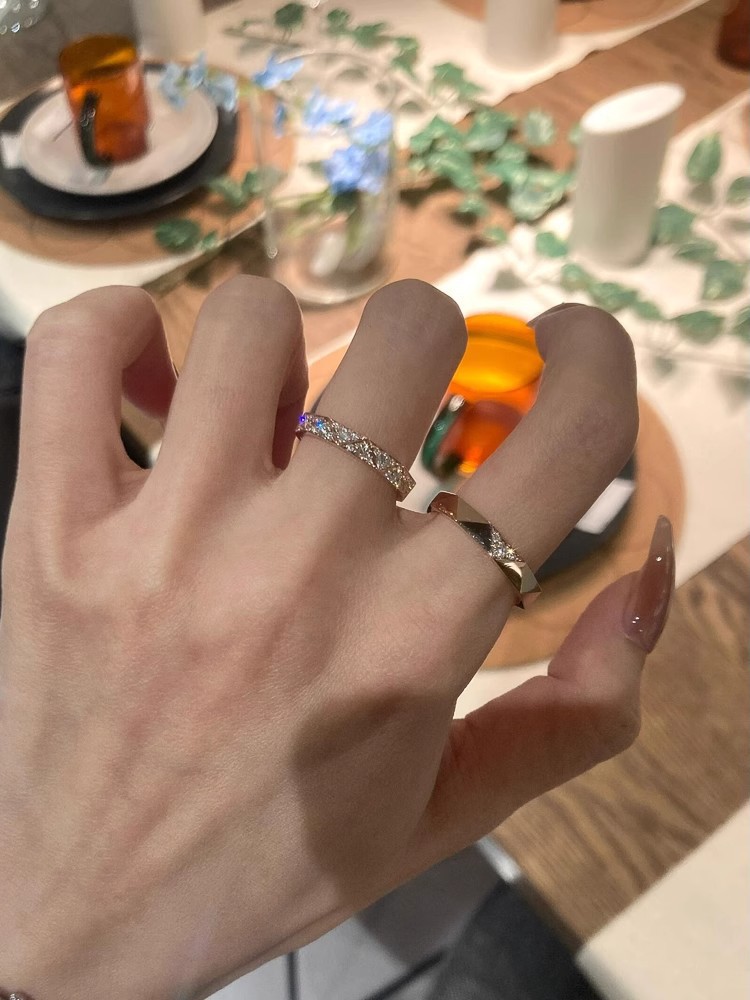 Color: JZ-693 – Diamond-shaped V-opening ring; JZ-694 – Fully diamond-set diamond ring