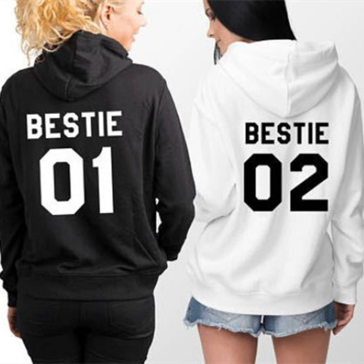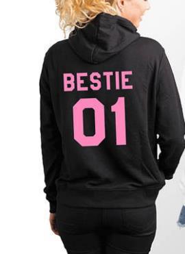 Color: black and white letters (BESTIE 01), white and black words (BESTIE 02), black and pink words (BESTIE 01), white words (BESTIE 02)