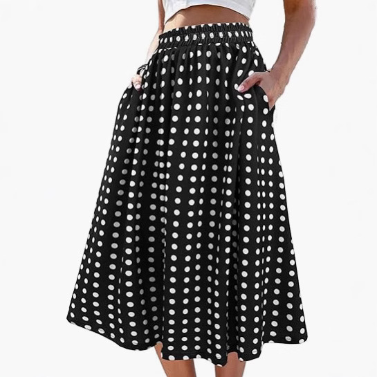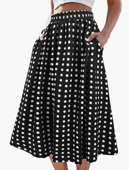 Colors: Black with red flowers, black with white flowers, polka dots, red, navy blue