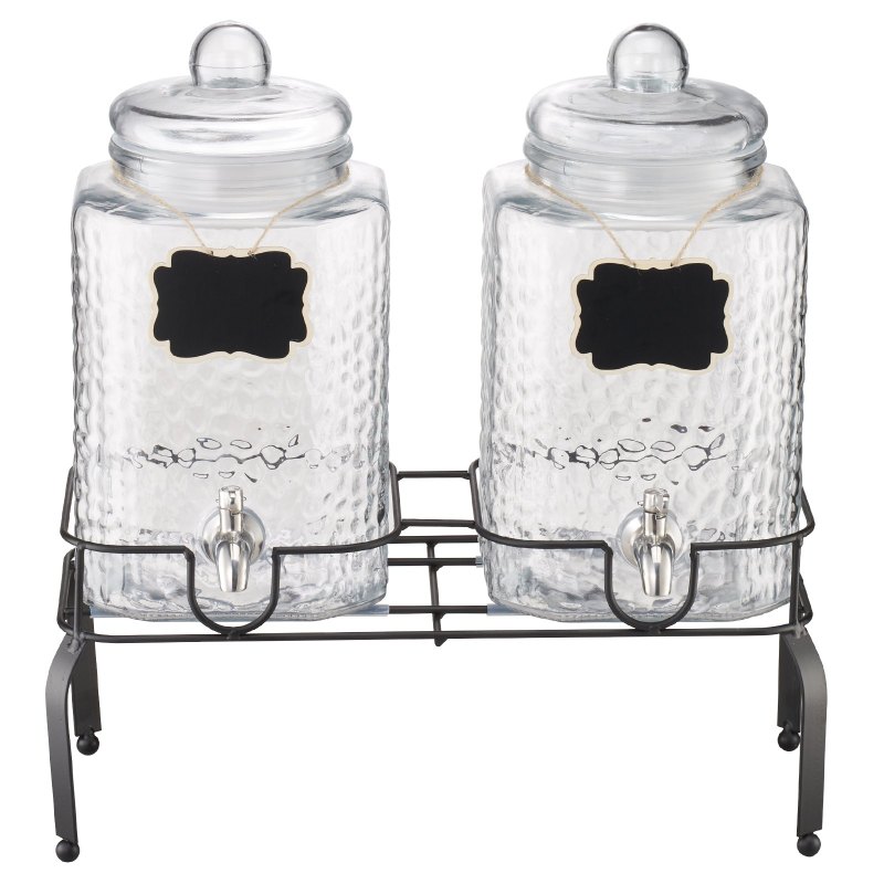 Beverage Dispenser, 2 Pack 1.5 Gallon Drink Dispensers For Parties, Glass Juice Dispenser With Metal Stand, Stainless Steel Spigot, Iced Tea Lemonade Juice Water Dispensers For Parties
