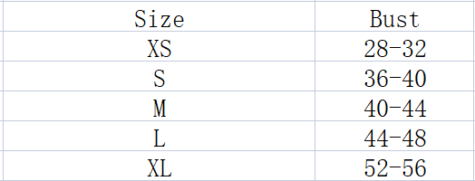 Size: XS-approximately 2-3 kg, S-approximately 4-6 kg, M-approximately 7-8 kg, L-approximately 10-12 kg, XL-approximately 14-18 kg