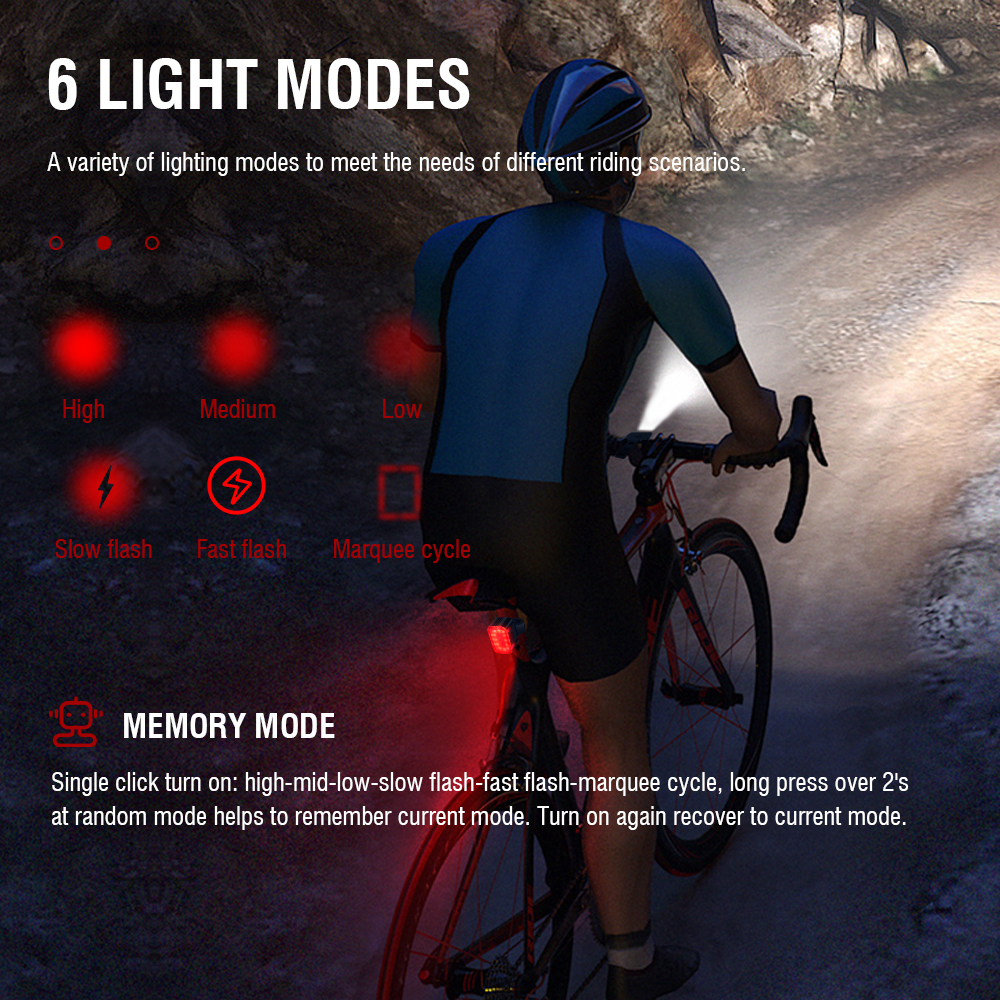 Tail Light Modes: High - Medium - Low - Slow Flash - Fast Flash - Marquee