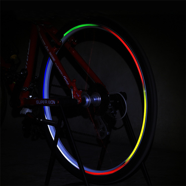 Warm tip: If the bending of the wheel is not appropriate, it is recommended to cut the reflective sticker into several small sections and paste it. The original size is 26 inches.