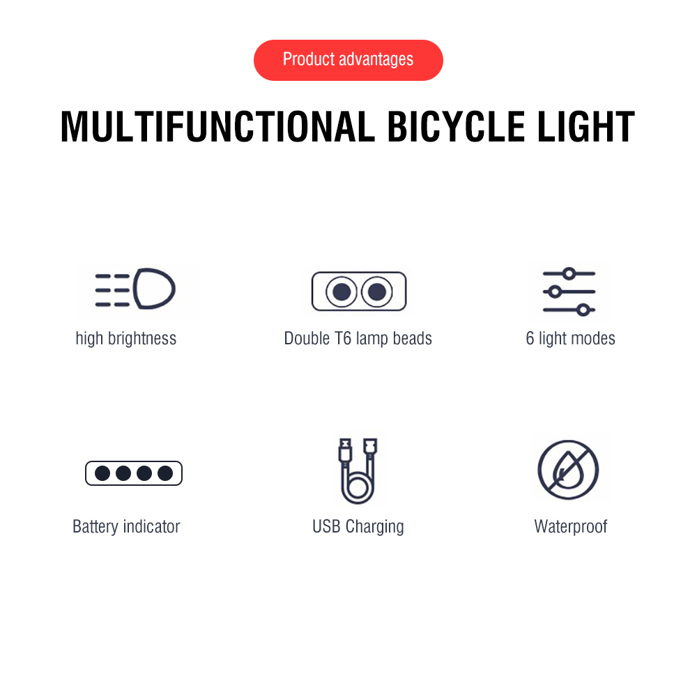 Complete Set: 1* bicycle light, 1* charging cable