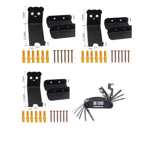 Black3pcs set: Bichon hook *3, screw glue *18, screw *18, wheel support *6, multi-function car repairing wrench *1