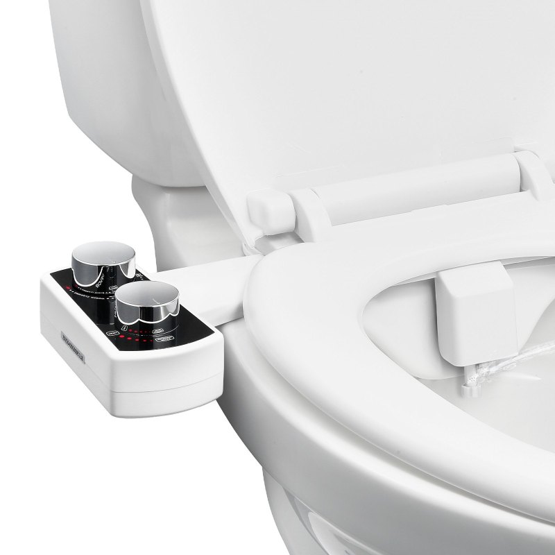 Retractable Nozzles: This toilet bidet attachment features a retractable nozzle that hides behind a splash guard when not in use, keeping it clean and protected for a cleaner wash every time.