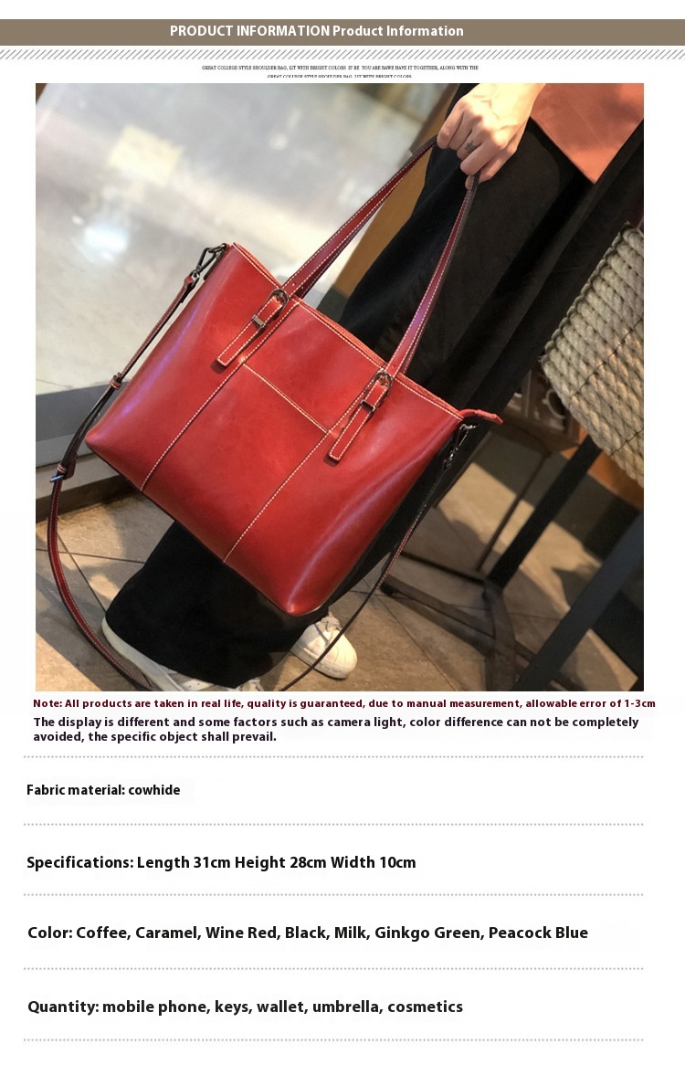 Big Bag Genuine Leather Capacity Cowhide Messenger Bag Female Hand-held Tote