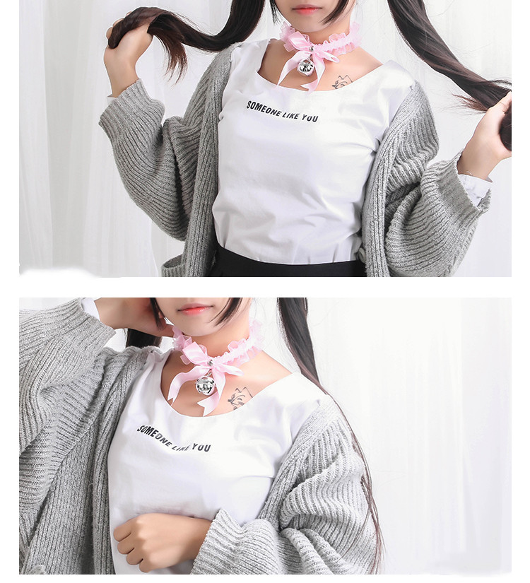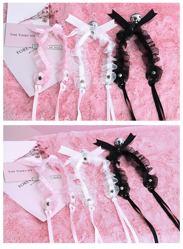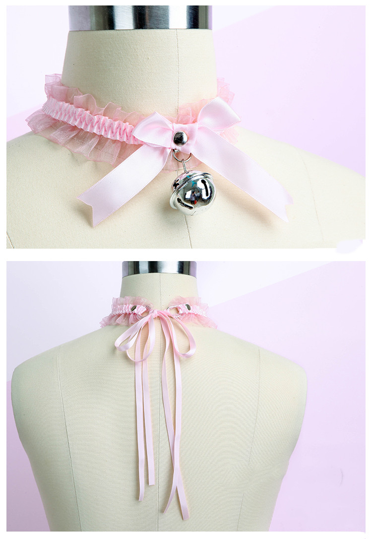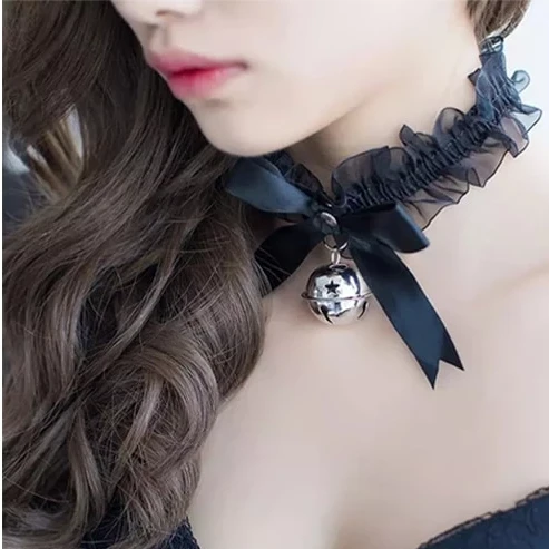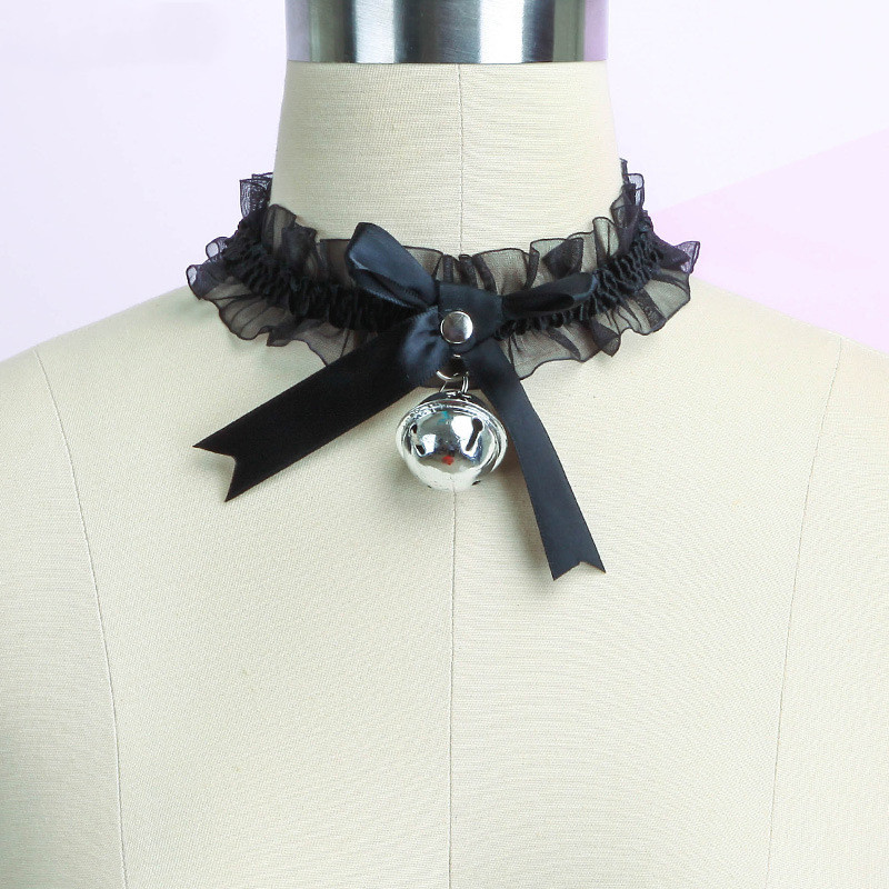 Product name: lace bell neck ringColor style: black, white, pinkProduct material: lace, metal