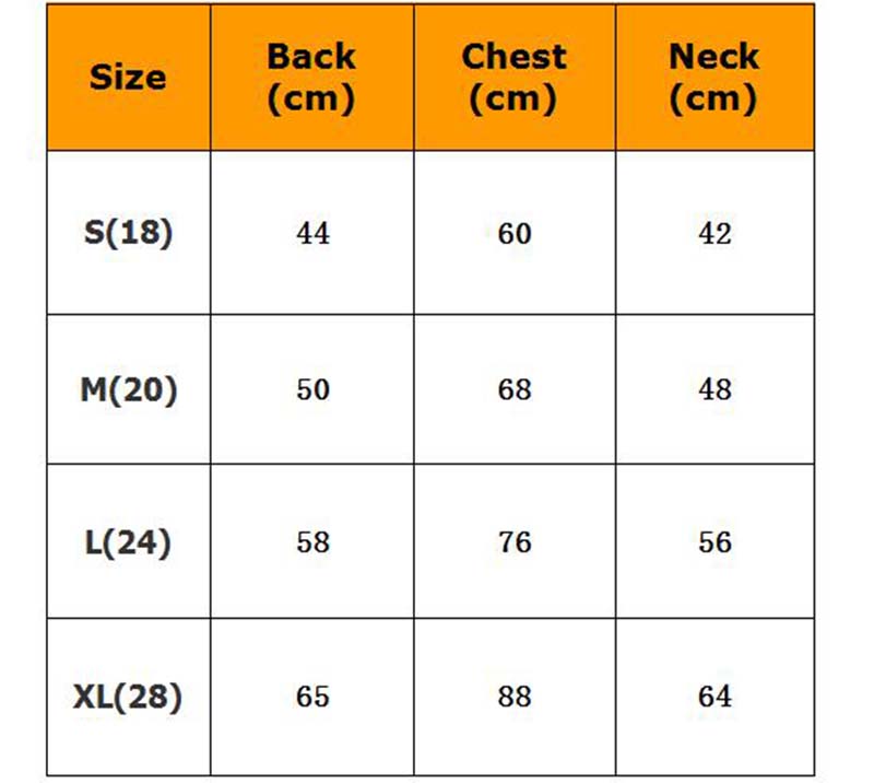 Note: For the chest, it is better to choose one size larger than one size smaller.