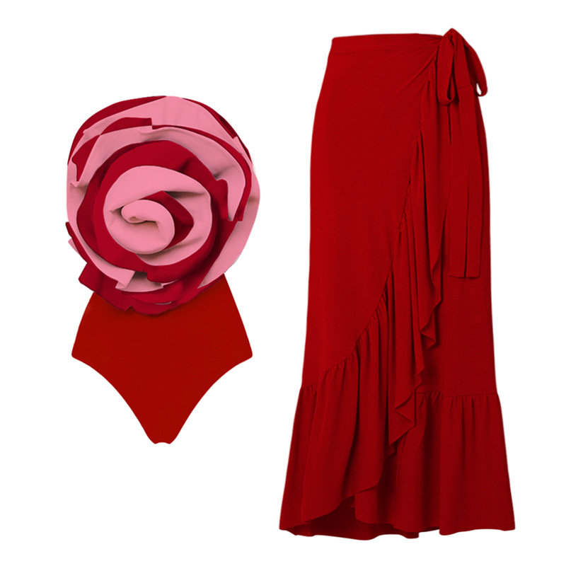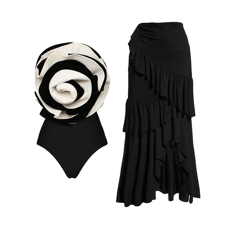 Color: black and white set, red suit, black and white swimsuit, red swimsuit, black skirt, red skirt