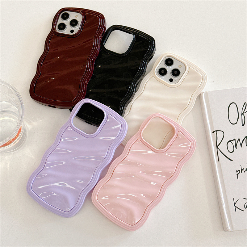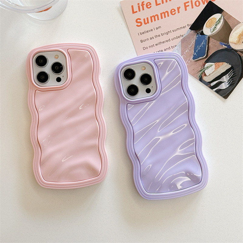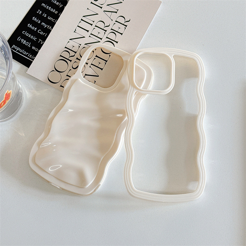 Big Wave Phone Case Cream Pleated Drop-resistant Protective Cover